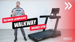 - Встречайте складная коммерческая беговая дорожка BRONZE GYM WALKWAY. Первое, что нужно знать, это складной тренажёр. И в классе полноценного коммерческого оборудования такой, согласитесь, встречается нечасто. В сложенном состоянии, как можете видеть, конструкция весьма компактная. Такой вариант станет отличным выбором для уютной студии фитнеса, офисного спортзала, учебного центра, отеля, гостиницы, дома отдыха или санатория. А еще, например, больницы или реабилитационного центра. И совместить в одной конструкции складную систему хранения и надежность коммерческого оборудования — задача весьма непростая, но вполне доступная инженерам компании BRONZE GYM. Несмотря на относительно компактные внешние габариты, это именно профессиональный тренажёр с полным набором всех самых передовых функций, надёжным прочным конструктивом и строгим премиальным дизайном. Дорожка рассчитана на максимальный вес пользователя в солидные 150 кг и сама по себе весит внушительные 120, что является следствием приличного запаса прочности и надёжности. При этом благодаря встроенным транспортировочным роликам переместить в нужное место её можно силами всего одного крепкого мужчины. Благодаря серьёзной массе и прочной стальной раме во Время работы конструкция ощущается максимально стабильной и монолитной. Ничего не шатается, не люфтит и не издаёт посторонних звуков. Усиленное беговое полотно размером 145 на 55 см в сочетании с электромотором мощностью 3 л.c. Позволяет разогнаться на дорожке до максимальной скорости в 22 км в час. И этого более чем достаточно даже самым продвинутым пользователям. Наклон полотна регулируется автоматически, программой или кнопками на консоли. Максимальный угол подъёма составляет полноценное 15%. Шесть встроенных динамических лостомеров, поглощая удар, обеспечивают развитую амортизацию и дополнительный комфорт, особенно важный пользователям с проблемами суставов. Также это отличный вариант для реабилитационной физиотерапии. Минимальная скорость движения полотна всего 1 км в час, широкие направляющие для ног по бокам и большие крупные поручни для надёжной опоры. Дизайн дополнил светодиодной подсветкой, которая не только создаёт приятный внешний вид, но и имеет практическое применение. Она горит зелёным светом, когда дорожка не работает, и красным, когда включена. С одного взгляда даже с большого расстояния понятно, занят тренажёр или свободен. Элементы управления собраны в одном удобном месте. Кнопки крупные и чёткие, все надписи переведены на русский язык. На консоли с контрастным жидкокристаллическим дисплеем отображается вся необходимая информация о процессе тренировки. Имеется целых 36 тренировочных программ, в том числе 4 ручных режима, 3 пользовательских, 3 пульсозависимых плюс встроенный жироанализатор. Показания пульса можно контролировать с помощью специальных датчиков на поручнях или подключив беспроводной нагрудный кардио датчик. Датчик в комплекте не идёт и приобретается отдельно. К тренажёру через Bluetooth можно подключить смартфон или планшет, разместить на удобной полке и тренироваться в таких популярных фитнес-приложениях, как Kinomap и Zwift. На удобной просторной полке есть два очень вместительных кармана для всяких нужных мелочей — от фляги с водой до полотенца, телефона, ключей или чего-то еще. И, конечно, бесп