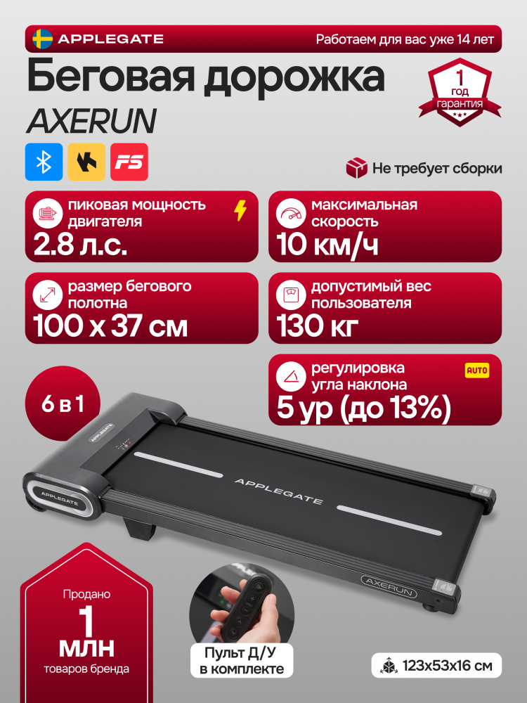 - Беговая дорожка домашняя APPLEGATE AXERUN