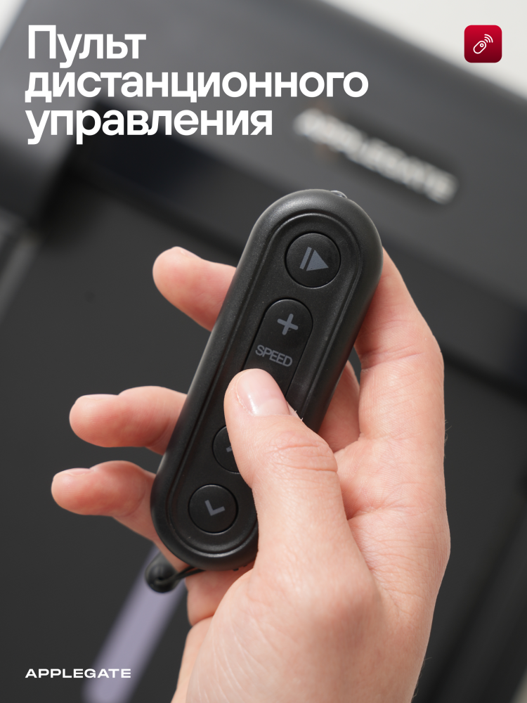 - APPLEGATE AXERUN — компактная электрическая беговая дорожка для домашних тренировок, созданная для ходьбы и лёгкого бега с расширенными возможностями нагрузки. Модель сочетает в себе электронную регулировку угла наклона и минимальную высоту корпуса, что делает её удобной для использования в квартире без выделения отдельного пространства под тренажёр. AXERUN подойдёт тем, кто хочет разнообразить кардиотренировки, повысить их эффективность и при этом сохранить компактность и простоту хранения. Конструкция и комфорт движения Дорожка выполнена на высокопрочной раме с антикоррозийной обработкой и однослойной покраской. Корпус изготовлен из износостойкого ABC-пластика, устойчивого к ежедневной эксплуатации. Парафинированная дека из МДФ толщиной 12 мм в сочетании с беговым полотном 100 × 37 см обеспечивает стабильную и комфортную зону движения. Амортизационная система Soft LEG™ эффективно снижает ударную нагрузку на суставы и позвоночник, делая тренировки более мягкими и безопасными даже при регулярном использовании. Техническое оснащение и управление Модель оснащена надёжным двигателем 1.9 DC Schneider Electric с пиковой мощностью 2.8 л.с., обеспечивающим стабильную работу в диапазоне скоростей от 1 до 10 км/ч. Ключевая особенность — электронная регулировка угла наклона с 5 уровнями, позволяющая менять интенсивность тренировки без остановки движения. Управление и интерфейс: • LED-дисплей на моторном отсеке, • отображение: время, скорость, дистанция, калории, • режимы: быстрый старт и ручной режим, • пульт дистанционного управления для быстрого изменения скорости и наклона. Интеграция: • Bluetooth для подключения к приложениям Fitshow™ и Kinomap™, • интерактивный уровень интеграции Kinomap, • возможность подключения Bluetooth-кардиодатчика через фитнес-приложения. Интерфейс поддерживает русский и английский языки. Ключевые преимущества • Электронный наклон (5 уровней) — повышение эффективности тренировок без увеличения скорости. • Компактная конструкция — высота всего 16 см, удобно хранить под мебелью. • Амортизация Soft LEG™ — комфорт и защита суставов. • Надёжный двигатель Schneider Electric — плавная и стабильная работа. • Bluetooth и Kinomap™ — интерактивные тренировки и виртуальные маршруты. • Пульт дистанционного управления — управление без наклонов и пауз. • Транспортировочные ролики для лёгкого перемещения. • Подходит пользователям до 130 кг. APPLEGATE AXERUN — компактная беговая дорожка с электронным наклоном для тех, кто хочет получать максимум пользы от домашних кардиотренировок без лишних габаритов.
