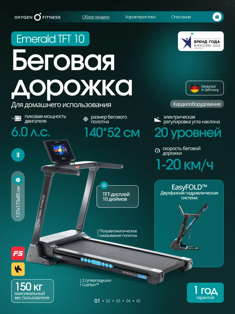 - Беговая дорожка домашняя OXYGEN FITNESS EMERALD TFT 10