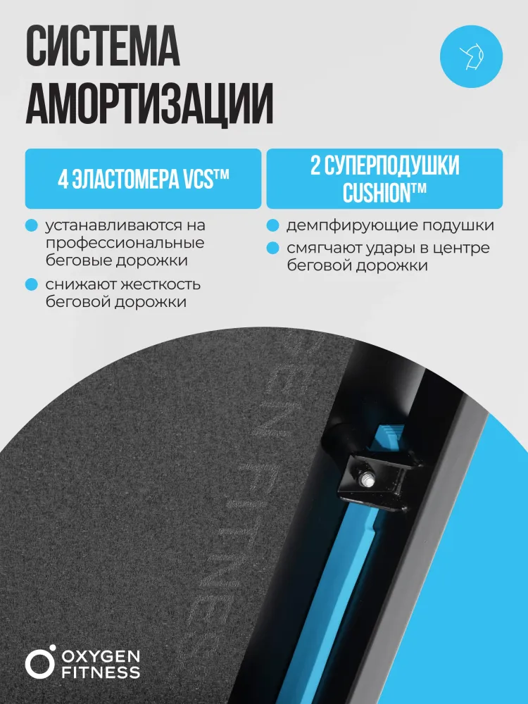 - Модель OXYGEN FITNESS EMERALD TFT 10 входит в серию EMERALD от OXYGEN FITNESS - бренда фитнес-оборудования. Эта беговая дорожка является идеальным сочетанием современного дизайна и функциональности для использования дома. Дизайн модели поражает своей стильностью и практичностью. Она выполнена в черном цвете с изысканными голубыми деталями, придающими яркость и современный вид. Гармоничное сочетание цветов делает эту дорожку привлекательной и подходящей для любого интерьера. Она идеально впишется в вашу квартиру, дом, небольшой спортивный зал, дачу или даже офис, обеспечивая комфортные условия для занятий спортом. Модель OXYGEN FITNESS EMERALD TFT 10 предлагает мощный двигатель с мощностью до 3,5 л.с. и пиковой нагрузкой до 6,0 л.с., что обеспечивает стабильный и плавный ход даже во время интенсивных тренировок. Но что делает эту модель особенно привлекательной, так это возможность разгона до 20 км/ч. Это действительно высокий показатель для домашней беговой дорожки, позволяющий пользователям насладиться бегом на полной скорости, подобно тому, как они бегают на открытом воздухе. Такой широкий диапазон скоростей открывает множество тренировочных возможностей, включая интервальные тренировки, улучшение кардио-выносливости и активное сжигание калорий. Модель EMERALD TFT 10 отличается возможностью изменять угол наклона от 1 до 20 уровней. Это открывает широкий спектр тренировочных возможностей, позволяя создавать супер сложные тренировки с имитацией бега или ходьбы в гору. Повышение угла наклона значительно увеличивает интенсивность упражнений, способствует улучшению выносливости и активирует различные группы мышц, делая каждую тренировку более интенсивной и результативной. Антискользящее беговое полотно толщиной 1.6 мм обеспечивает надежное сцепление обуви с поверхностью, что снижает риск травмирования суставов. Размер бегового полотна 140*52 см предоставляет достаточно пространства для комфортных и свободных движений во время тренировок, что особенно важно для длительных тренировочных сессий, позволяя сосредоточиться на достижении целей без дискомфорта. Разработчики модели EMERALD TFT 10 внедрили новую технологию под названием Self Lubricating Running Belt, что означает самосмазывающееся беговое полотно. Это решение облегчает уход за тренажером, сохраняя его производительность длительное время. Технология Self Lubricating создает долговременный смазочный эффект благодаря специальному слою с силиконовым маслом, воском и полимерными материалами. Такой слой позволяет дорожке сохранять гладкость хода и снижает износ, что продлевает срок службы оборудования. Амортизация модели представлена 4 цилиндрическими эластомерами и 2 демпфирующими суперподушками Cushion™. Эта технология снижает нагрузку на суставы во время тренировок, обеспечивая более комфортный и безопасный опыт. Она также уменьшает риск травм и переутомления, делая тренировки на дорожке EMERALD TFT 10 более эффективными и приятными. Беговая дорожка оснащена следующими габаритами в рабочем состоянии: длина - 173 см, ширина - 85 см, высота - 137 см. Благодаря системе складывания easyFOLD™, тренажер освобождает значительное место в помещении - до 112 см в длину. Это позволяет экономить место и делает дорожку удобной для размещения в углу комнаты или в другом ограниченном пространстве. Консоль модели OXYGEN FITNESS EMERALD TFT 10 представлена 10-дюймо