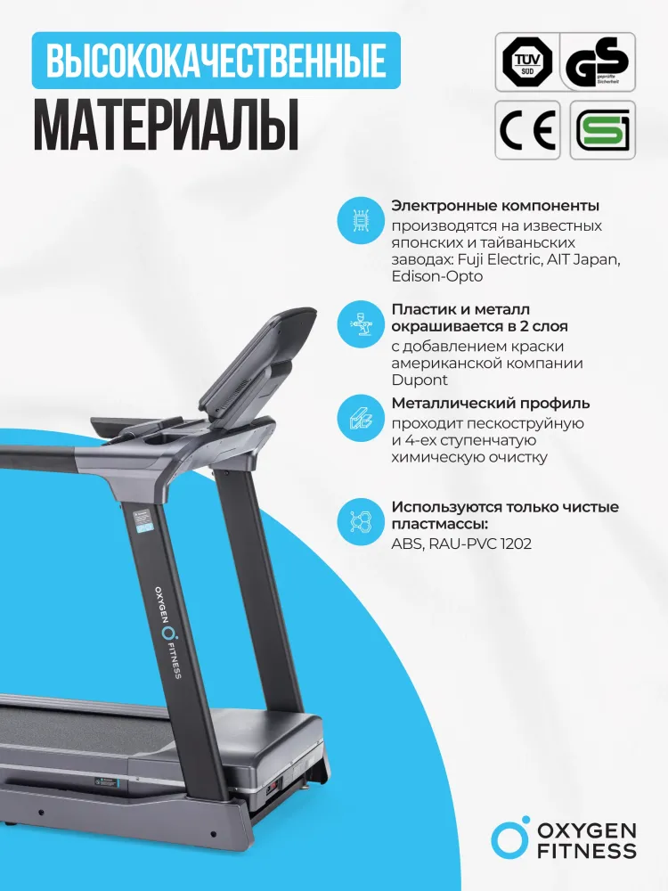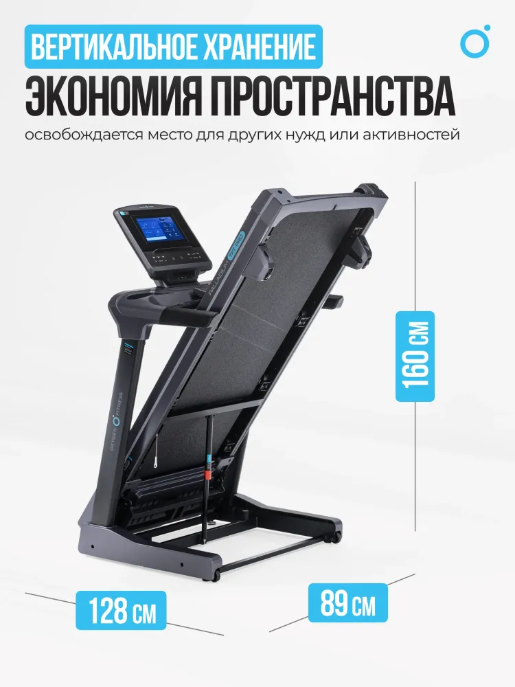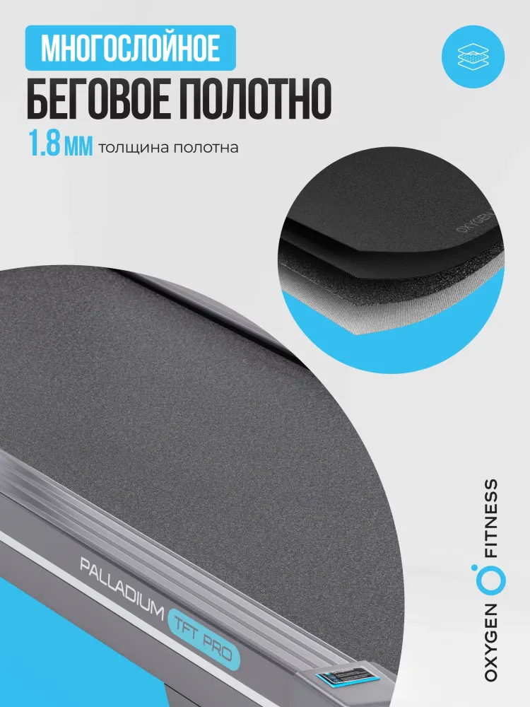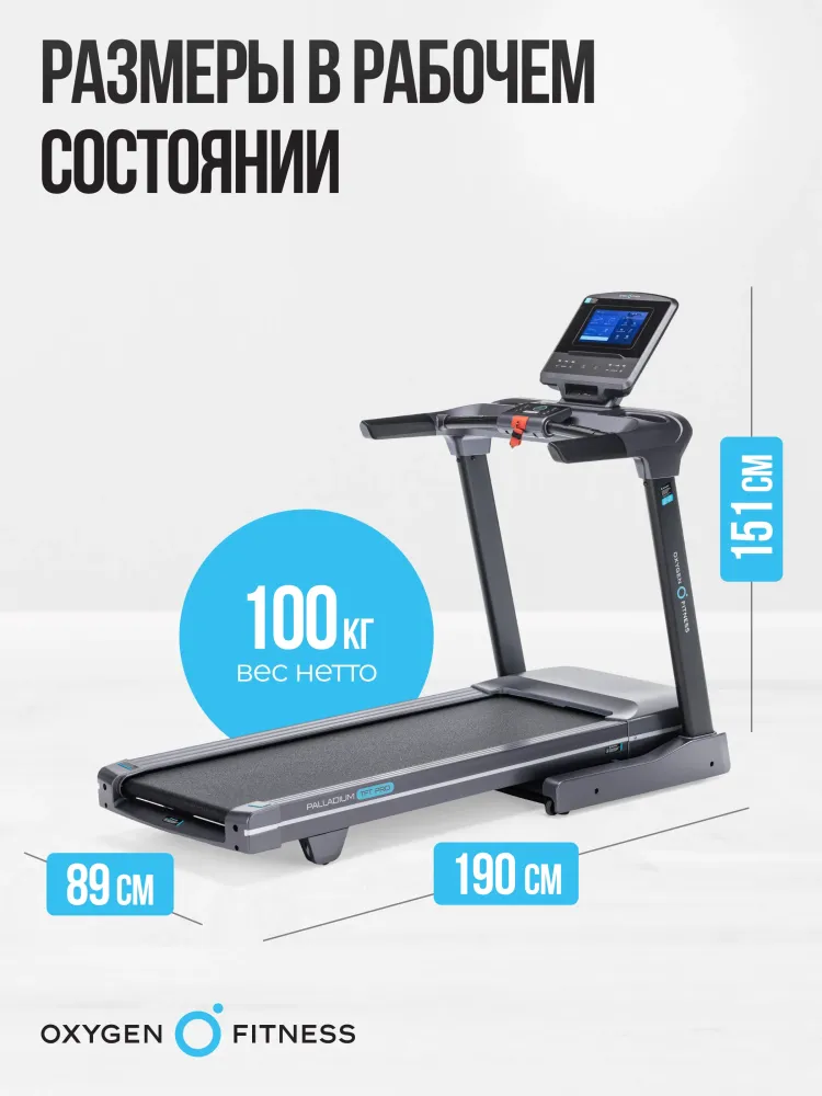 - Позвольте представить вам беговую дорожку, которая не просто отвечает вашим ожиданиям, а полностью их превосходит. OXYGEN FITNESS PALLADIUM TFT PRO — это выбор тех, кто стремится к совершенству в каждой тренировке. С невероятно мощным двигателем Fuji Electric AC на 4,0 л.с. и пиковой мощностью 6,5 л.с., эта дорожка превращает каждую тренировку в увлекательное и эффективное занятие. Вам больше не нужно ограничивать себя: диапазон скоростей от 0,8 до 18 км/ч дает возможность как новичкам, так и профессиональным спортсменам достигать новых высот. Прочность и долговечность – это еще одна важная особенность этой дорожки. С антикоррозийной обработкой и однослойной покраской, она будет служить вам годами, сохраняя свой внешний вид и функциональные характеристики. Впечатляющее беговое полотно, длиной 150 см и шириной 51 см, изготовленное из многослойного полимерного материала Habasit NVT-218 толщиной 1,8 мм, гарантирует максимальный комфорт и безопасность. Но это еще не все! Электрическая регулировка угла наклона и система амортизации с 8 прорезиненными эластомерами с пружинами SPRING-TRACK™ обеспечивают оптимальные условия для тренировок, вне зависимости от уровня вашей подготовки. Ваши суставы будут защищены, а нагрузка распределена равномерно, что делает каждую пробежку приятной и полезной. А теперь представьте себе тренировку с 10-дюймовым TFT дисплеем, который выводит всю необходимую информацию: от времени и скорости до калорий и пульса. Но самое главное — это интеграция с мобильными приложениями Fitshow™ и Kinomap™ через Bluetooth. Подключайтесь и наслаждайтесь уникальными функциями, отслеживая каждый шаг к своей цели. Для тех, кто ценит разнообразие и индивидуальный подход, OXYGEN FITNESS PALLADIUM TFT PRO предлагает 48 программ тренировок, включая виртуальные ландшафты, целевые и пульсозависимые программы. Не забудем и о встроенном жироанализаторе, который помогает точно измерить прогресс и скорректировать план занятий. Вы также оцените удобство складывания дорожки благодаря гидравлической системе easyFOLD™. Сложите ее всего за пару секунд, и дорожка легко уместится даже в ограниченном пространстве. А встроенные компенсаторы неровностей пола и транспортировочные ролики обеспечат легкость и комфорт в использовании. Этот тренажер создан для того, чтобы впечатлять не только своим функционалом, но и дизайном. OXYGEN FITNESS PALLADIUM TFT PRO выдерживает вес до 160 кг, что делает его идеальным выбором для пользователей любой комплекции. Качество подтверждается гарантией на 24 месяца, что свидетельствует о надежности и долговечности продукта. Не упустите возможность инвестировать в свое здоровье и комфорт. OXYGEN FITNESS PALLADIUM TFT PRO — ваш лучший выбор для дома и фитнес-зала, созданный для тех, кто стремится к максимальному результату! Ключевые преимущества OXYGEN FITNESS PALLADIUM TFT PRO: • диапазон скоростей от 0,8 до 18 км/ч; • большое беговое полотно Habasit NVT-218 толщиной 1,8 мм, длиной 150 см и шириной 51 см; • интеграция с мобильными приложениями Fitshow™ и Kinomap™ через Bluetooth; • 10-дюймовый TFT дисплей; • 48 встроенных программ тренировок; • гидравлическая система складывания easyFOLD™.