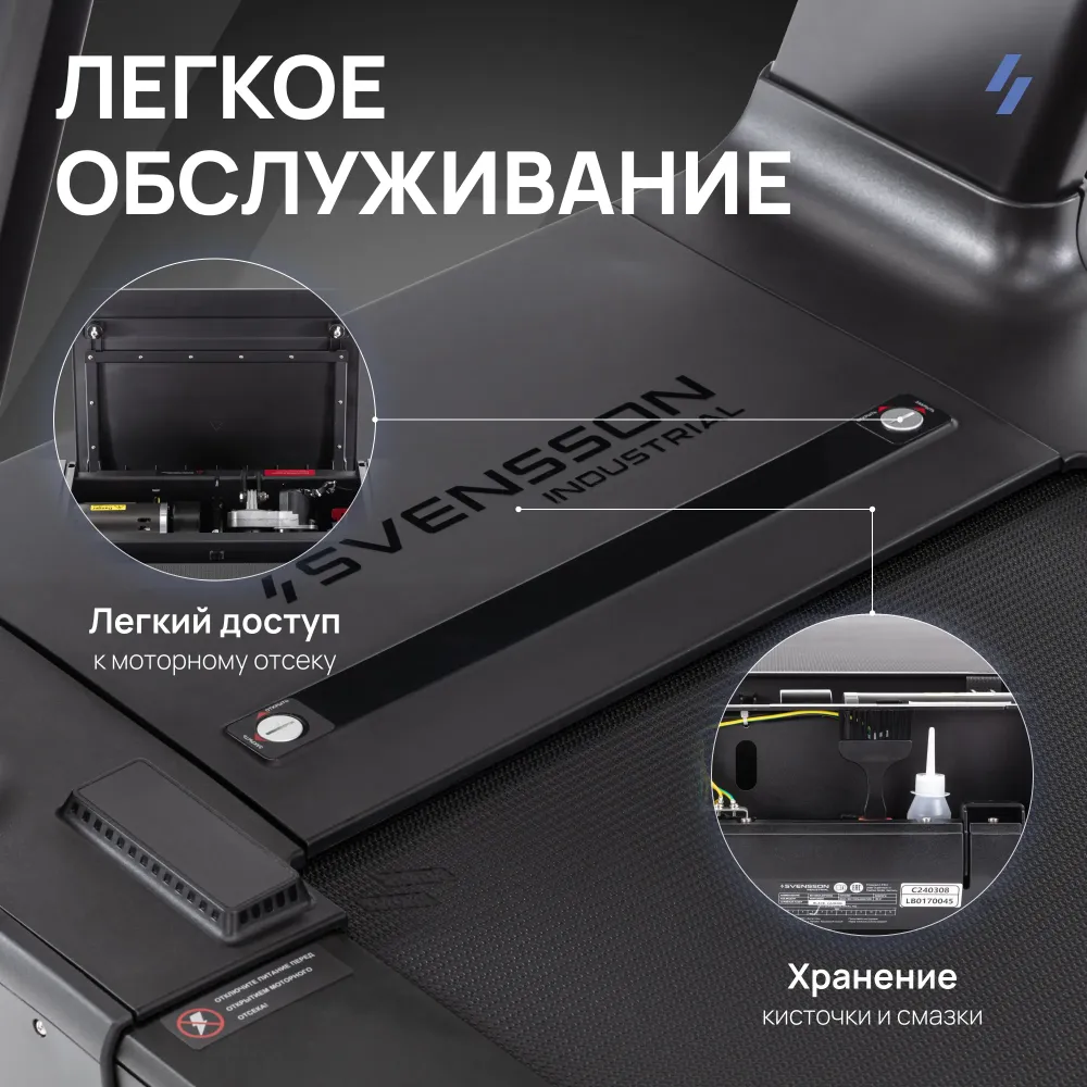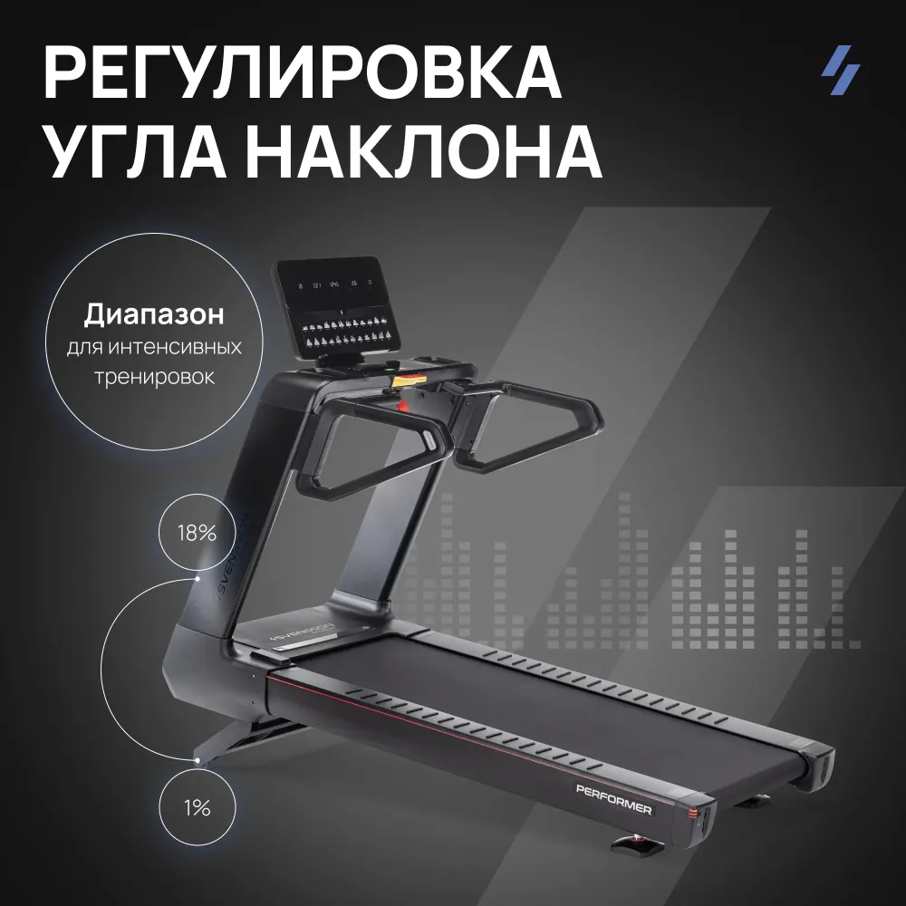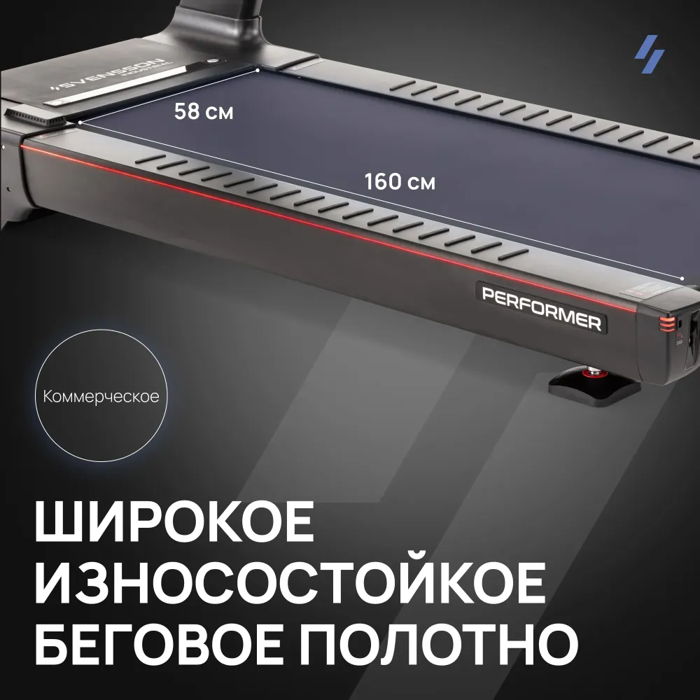 - Svensson Industrial, как всегда, представляет нечто эстетичное и притягивающее взгляды — модель беговой дорожки Performer. Этот бренд неизменно следует своей философии, создавая оборудование, которое не только функционально, но и прекрасно с точки зрения дизайна. Performer — яркий пример этого подхода, продолжая традицию сочетания простоты функционала и утонченности внешнего вида. Модель выполнена в строгом, но современном стиле, сочетающем чёрные и серые оттенки с тонкими акцентами красного цвета, что подчеркивает её премиальность и профессиональный характер. Обтекаемые формы корпуса придают дорожке динамичный и энергичный облик, а продуманные детали, такие как сигнальные огни, расположенные вдоль внешнего корпуса и по бокам бегового полотна, создают эффектное визуальное сопровождение во время работы тренажера. Эти огни не только придают модели футуристичный вид, но и выполняют практическую функцию, сигнализируя о том, что дорожка находится в рабочем режиме. Performer универсальна и подходит как для коммерческой сферы, так и для использования в домашних условиях. В загородных домах и резиденциях эта модель станет центральным элементом спортивного уголка, добавляя нотку профессионализма в домашние тренировки. В фитнес-клубах она подчеркнет статус заведения. Performer также будет незаменимой в медицинских учреждениях, предлагая пользователям надежный инструмент для поддержания здоровья. Особого внимания заслуживает её использование в гостиничном бизнесе — отели, загородные зоны отдыха и гостевые дома могут предложить своим клиентам уникальную возможность тренироваться с комфортом и стилем. Технические характеристики модели впечатляют и обеспечивают пользователям максимально комфортные и эффективные тренировки. Мощный двигатель в 5 л.с. с пиковой мощностью до 7,5 л.с. позволяет развивать скорость от 0,8 до 22 км/ч. Широкое беговое полотно длиной 160 см и шириной 58 см обеспечивает достаточно места для комфортного бега, даже при высокой скорости. Электронная регулировка угла наклона в диапазоне от 0 до 18% позволяет варьировать нагрузку, что делает тренировки более разнообразными и эффективными. Модель оснащена транспортировочными роликами и компенсаторами неровностей пола, что облегчает её установку и использование в различных условиях. Консоль модели включает в себя LED-дисплей, отображающий ключевые показатели тренировки: время, скорость, угол наклона, дистанцию, калории, пульс и количество шагов. Svensson Industrial Performer предлагает 34 программы, включая ручной режим, 3 режима обратного отсчета, 24 предустановленные программы, 3 пользовательских и 3 пульсозависимые программы, что позволяет настроить тренировки под индивидуальные потребности каждого пользователя. Мультимедийные возможности представлены встроенными динамиками и возможностью воспроизведения аудиофайлов, что делает тренировки более увлекательными. Интеграция с мобильными приложениями через Bluetooth (FITSHOW, KINOMAP, ZWIFT) открывает дополнительные возможности для пользователей. Лёгкий доступ к моторному отсеку позволяет выполнять обслуживание дорожки самостоятельно. Для этого достаточно использовать небольшой металлический элемент или монетку, чтобы открыть отсек. Внутри предусмотрены силиконовая смазка и щетка для обслуживания, что делает процесс ухода за дорожкой простым и удо