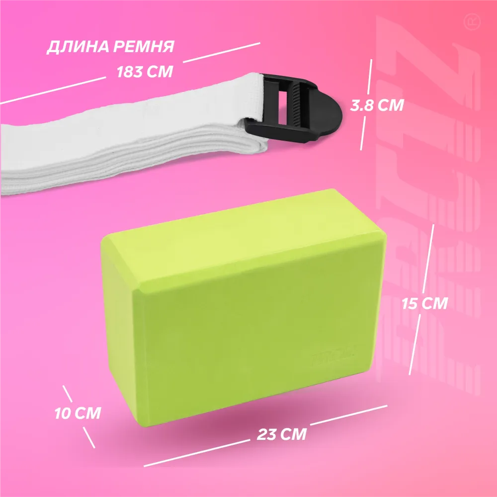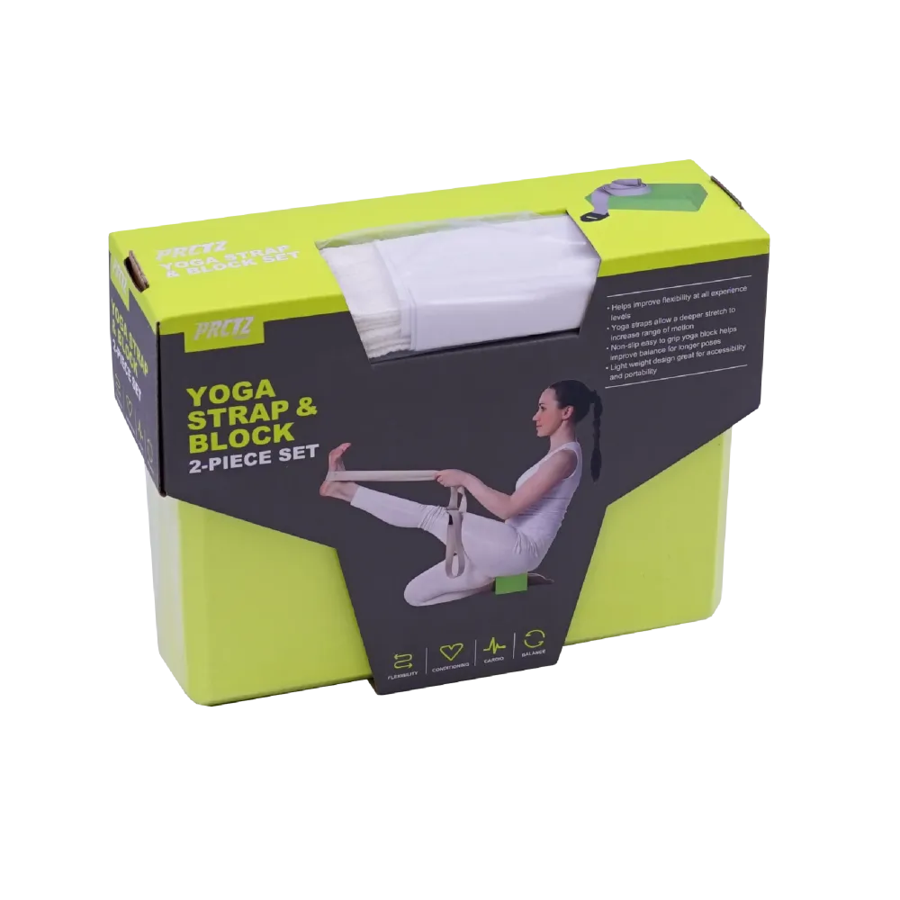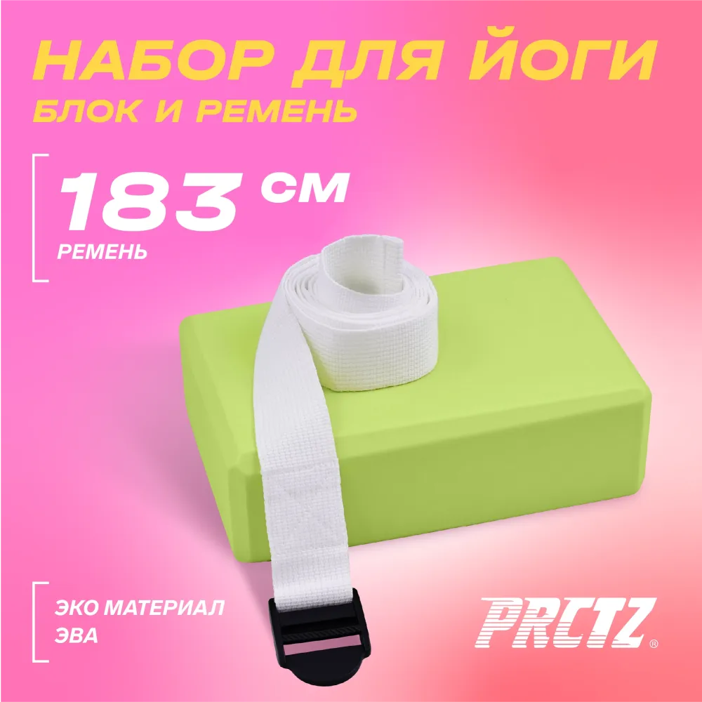 - Блок для йоги в комплекте с ремнем PRCTZ YOGA STRAP & BLOCK 2-PIECE SET, набор.