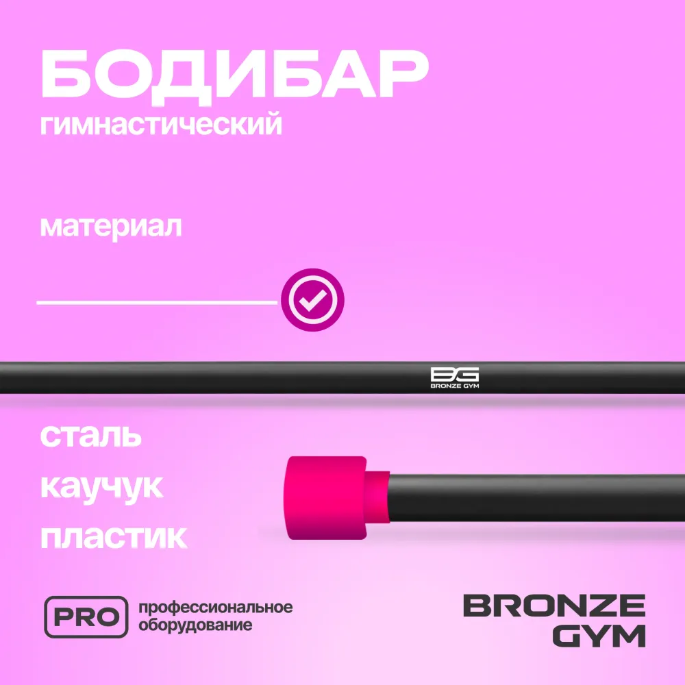 - Бодибар от BRONZE GYM — это гимнастическая палка без дополнительных грузов, предназначенная для силовых упражнений. Такой универсальный спортивный снаряд помогает тренировать все группы мышц, имитирует гриф штанги и одинаково хорошо подходит для занятий в спортзале и дома. BG-FA-BDB1 имеет покрытие из искусственного каучука, приятное на ощупь, он не будет оставлять мозолей на ладонях и ссадин на спине и плечах. Длина снаряда составляет 120 см, диаметр 3 см. Вес бодибара 1 кг. Идеально подходит для функциональных тренировок, как индивидуальных, так и в группах. Используется в качестве отягощения более легкого, чем штанга.
