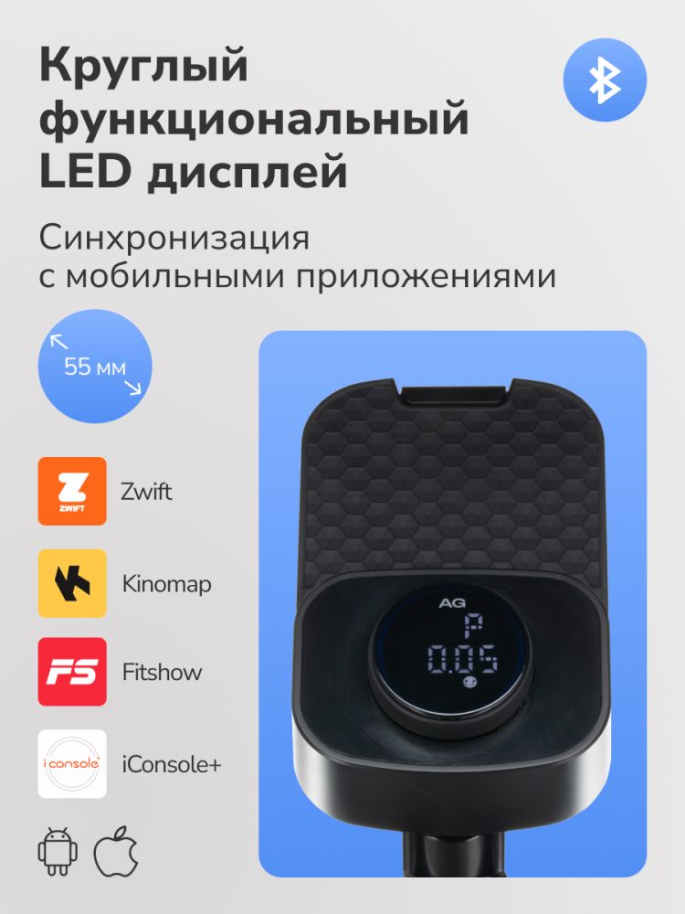 - APPLEGATE LUNALEAP - это тренажер, который объединяет в себе высокую прочность, передовые технологии и комфорт. Каждая деталь LUNALEAP продумана с любовью и вниманием к деталям. Высокопрочная рама с двухслойной покраской обеспечивает надежность и долговечность тренажера, сохраняя его прекрасный внешний вид на протяжении долгих лет использования. Система нагружения электромагнитная magicFLOW™ PLUS является источником вашей мощной и эффективной тренировки. С 32 уровнями нагрузки вы сможете индивидуально настроить интенсивность тренировки в соответствии с вашими потребностями и целями. Маховик весом 12 кг обеспечивает плавное и практически бесшумное движение, что позволяет вам наслаждаться тренировкой в полной гармонии с окружающей средой. Ваш комфорт является нашим приоритетом. Удобные изогнутые подвижные поручни с мягкой оплеткой и неподвижные поручни с датчиками пульса обеспечивают комфортное и безопасное сцепление во время тренировки. Дополнительный комфорт обеспечивается антискользящими, увеличенного размера, педалями с расстоянием между ними в 7 см, что позволяет комфортно выполнять движения. С круглым функциональным LCD-дисплеем вы сможете отслеживать все необходимые данные, включая время, скорость, дистанцию, калории, обороты в минуту, Ватты, пульс, нагрузку и статус Bluetooth. Встроенные программы предлагают разнообразные тренировочные режимы, а пульсозависимые программы позволяют эффективно контролировать интенсивность тренировки и достигать ваших фитнес-целей. Совместимость с тренировочными мобильными приложениями, такими как Fitshow, Kinomap, Zwift и I-Console позволяет вам отслеживать прогресс и наслаждаться интерактивными тренировками в виртуальной среде. APPLEGATE LUNALEAP также имеет практичные функциональные особенности, такие как подставка под планшет, транспортировочные ролики и компенсаторы неровностей пола, что обеспечивает удобство и гибкость в использовании тренажера в любом помещении. Завоевывайте новые вершины фитнеса с эллиптическим тренажером APPLEGATE LUNALEAP. Его элегантный дизайн, передовые технологии и характеристики позволят вам наслаждаться тренировками, достигать ваших фитнес-целей и оставаться в форме прямо у себя дома.