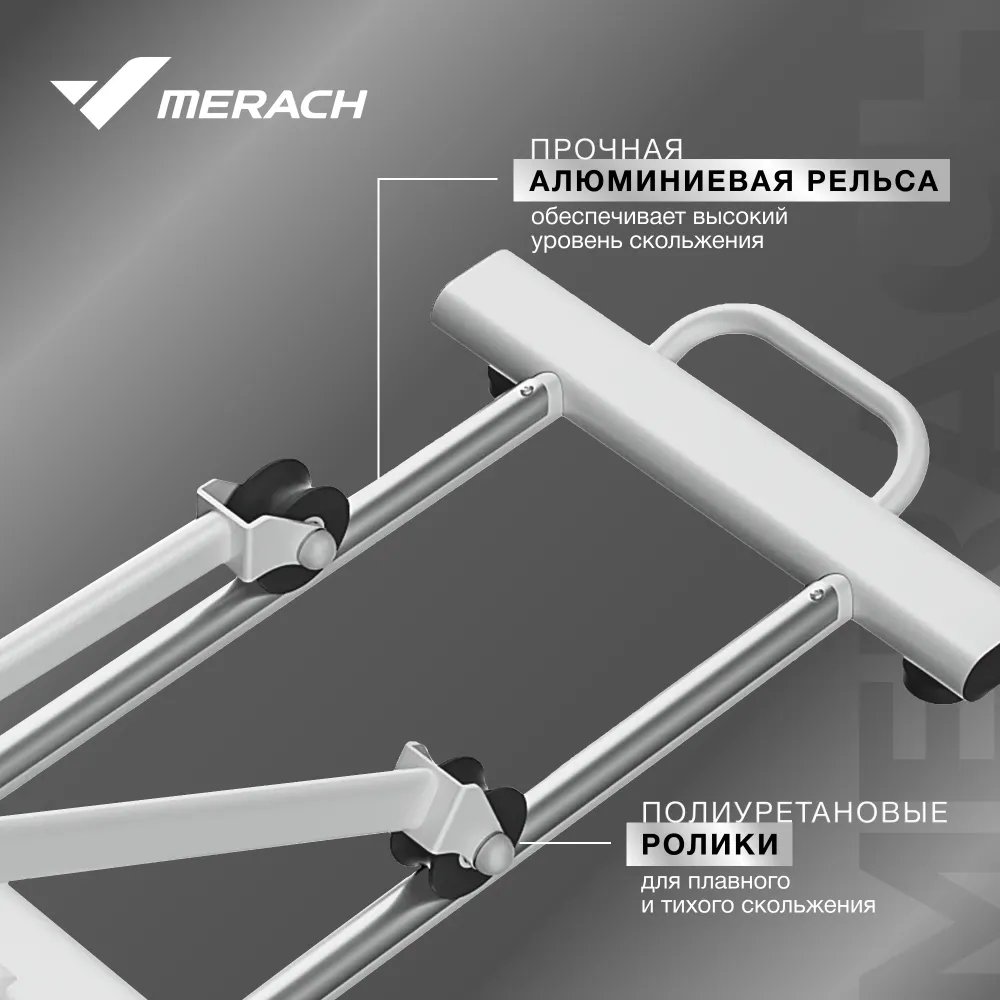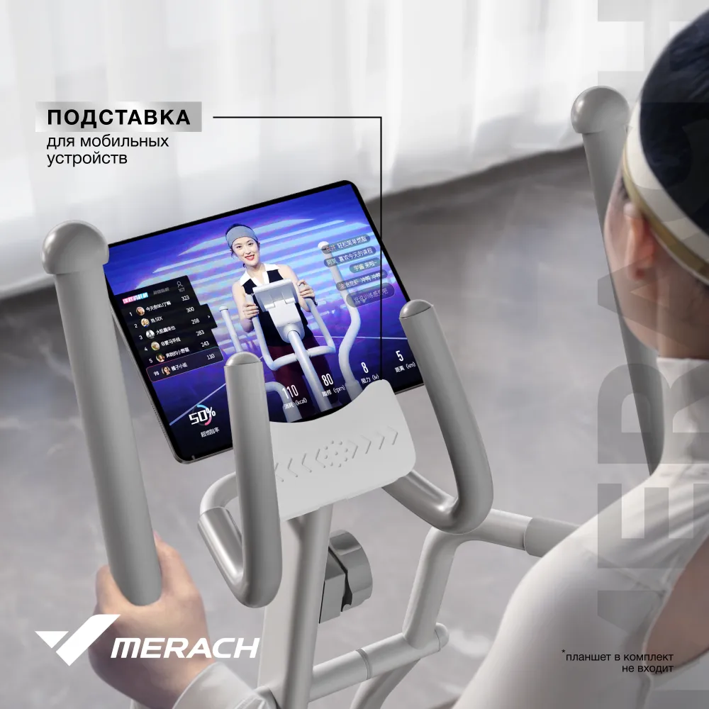 - MERACH - бренд премиум-класса, превосходящий все ожидания своих потребителей в области продуктивных тренировок. MERACH MR-E10 - магнитный эллиптический эргометр с переднерасположенным приводом. Уникальное расположение маховика спереди позволяет максимально оптимизировать траекторию движения, сократить расстояние между педалями и создать идеальный шаг. Таким образом, вы получаете несравненно эффективную и бережную тренировку, в то время как эллиптические тренажеры с заднерасположенным приводом не могут обеспечить такую же точечную нагрузку на мышцы бедер и ног, а также гарантировать комфорт для коленных суставов. Важным преимуществом переднего привода является минимальное расстояние между педалями, достигнутое благодаря особой конструкции рамы и педального узла MERACH MR-E10 (супермалый Q-фактор E.S.Q.F.). Оптимальная длина шага составляет 40 см, что является ключевым биомеханическим параметром. Абсолютно плавное скольжение на любом уровне нагрузки обеспечивается магнитной системой и сбалансированным маховиком весом 7 кг. Бортовой компьютер с ярким LCD-дисплеем позволяет отслеживать все важные параметры тренировки, включая время, дистанцию, скорость, калории и пульс. Воспользуйтесь 16 предустановленными программами, специально разработанными для тренировки различных физических качеств. Дополнительно, вы сможете разнообразить свою тренировку, подключившись к популярным коучинговым приложениям MERACH и KINOMAP через смартфон по Bluetooth. Насладитесь премиальным опытом тренировок с MERACH MR-E10 - вашим идеальным спутником для достижения выдающихся результатов.