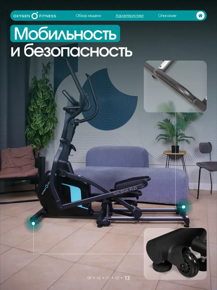 - Эллиптический тренажер домашний OXYGEN FITNES GALENA FLD