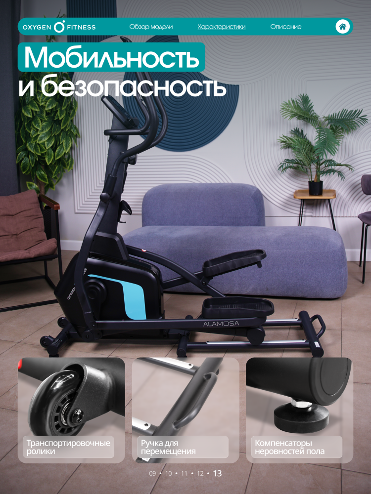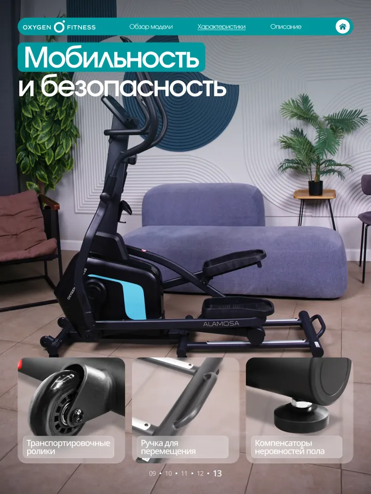 - Эллиптический тренажер домашний OXYGEN FITNESS ALAMOSA