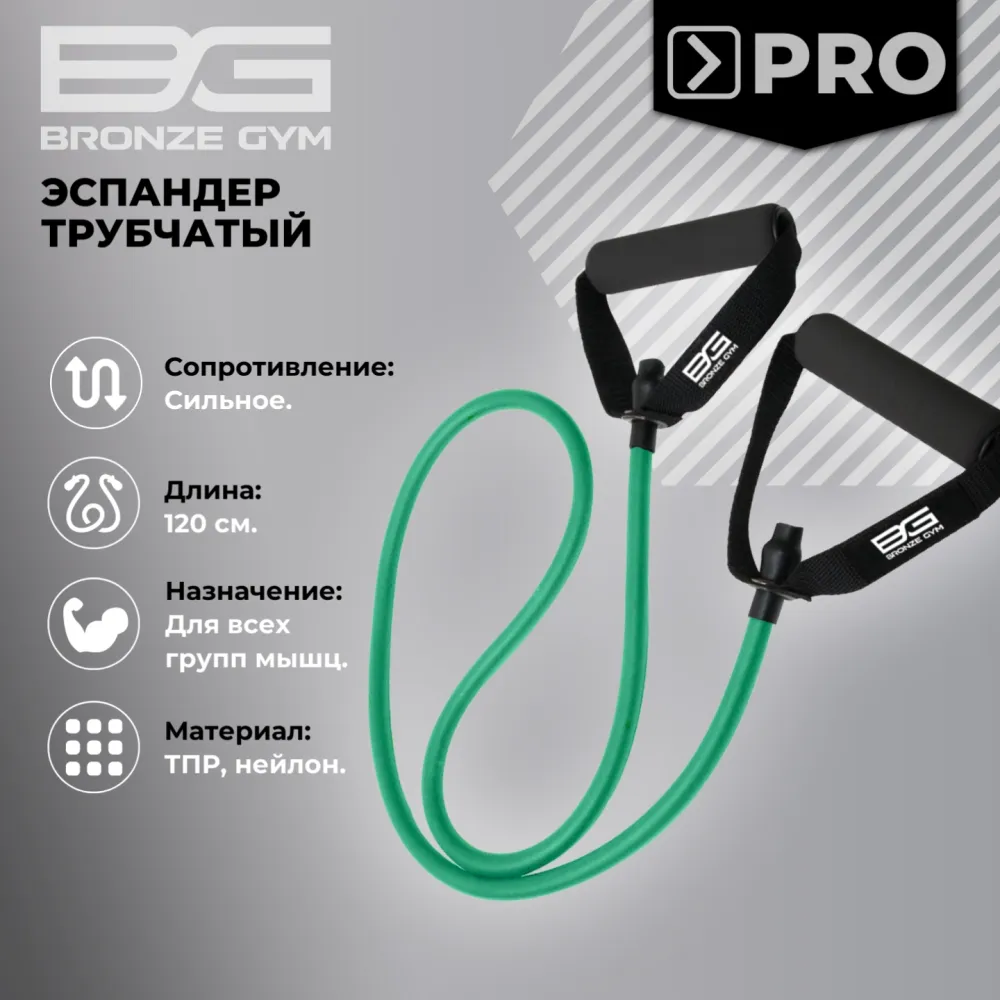 - Трубчатый эспандер Bronze Gym – это спортивный тренажер для проработки всех групп мышц с минимальной нагрузкой на суставы. Имеет сильное сопротивление. Регулярные занятия с тренажером повышают выносливость, сжигают калории, способствуя снижению веса и формированию спортивной подтянутой фигуры. Тренажер прост в использовании, не занимает места при хранении и имеет качественное исполнение.