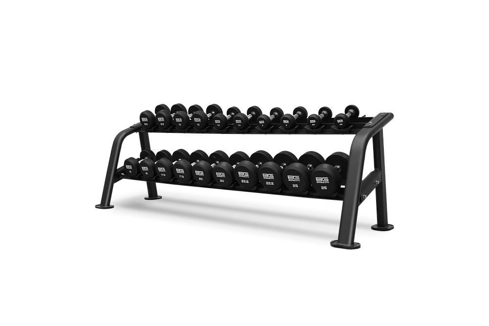 - Профессиональные гантели от BRONZE GYM имеют обрезиненную поверхность, которая предотвращает повреждение стоек под гантели, напольного покрытия и другого тренировочного оборудования. Идеально подходят для интенсивной эксплуатации в фитнес-клубах с большой пропускной способностью. Крупная маркировка весов, позволяющая быстро подобрать необходимый вес, придется по вкусу всем клиентам без исключений. Хромированная рукоятка с текстурным узором делает хват удобным и нескользящим. Широкий выбор нагрузки: от 2.5 кг до 50 кг. шаг – 2.5 кг.10 пар. Данная позиция представлена набором от 27.5 до 50 кг (стойка в комплект не входит). Длина ручки гантели составляет 15 см.