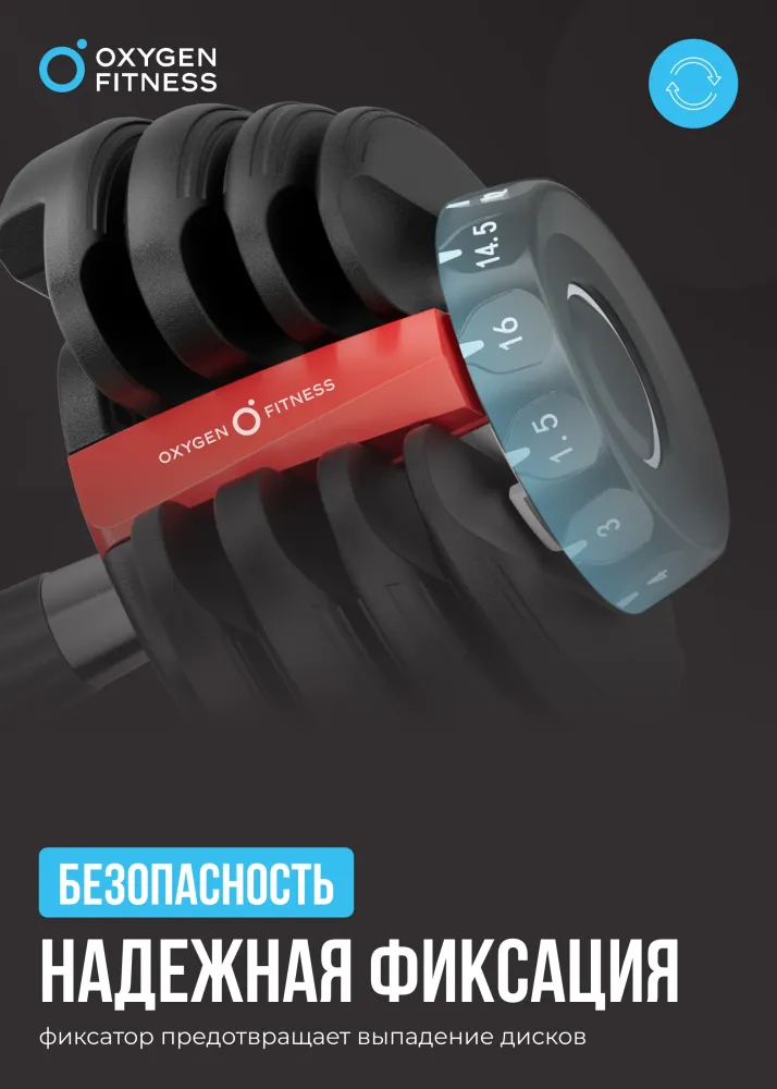 - Гантель регулируемая OXYGEN FITNESS FLEXER 16 кг