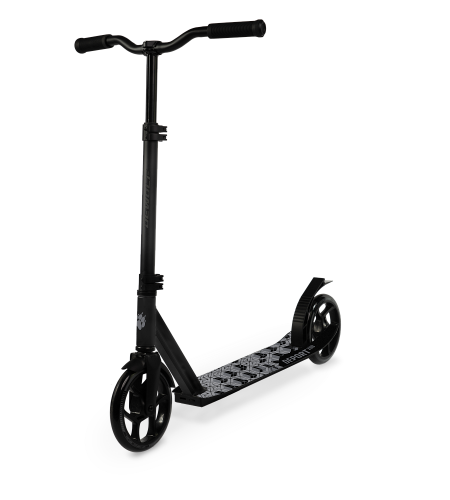 - Прочный городской самокат DEWOLF DEPORT 200 -устойчивый и бесшумный. Кататься на таком самокате одно удовольствие. Самокат с большими колёсами 200 мм удобен для поездок по городу. Регулируемый изогнутый руль можно зафиксировать по росту, благодаря специальному механизму и зажиму на стойке выноса самоката. Плотные хомуты сделают катание на самокате максимально комфортным. Самокат DEPORT 200 вести всего 5 кг. и поэтому идеально подходит для поездок по городу, поскольку незначительный вес позволяет переносить его через тротуар и ступени без посторонней помощи. Модель выполнена из высокопрочного алюминия и выдерживает нагрузки от 120 кг до 150 кг. Вы будете наслаждаться комфортным катанием на новом самокате DEPORT с большими колёсами.