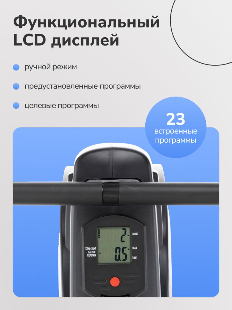 МаркаAppleGate АртикулR14_M Назначение (Fitathlon)домашнее Тип тренажера (Fitathlon)гребной Система нагружениямагнитная Количество уровней нагрузки16 Регулировка нагрузкимеханическая Сиденьеантискользящее повышенной комфортности Инерционный вес маховика, кг6 Рукояткипрямая с оплеткой из пенорезины Тип консолиLCD дисплей монохромный Показания консоливремя, калории, количество оборотов в минуту Общее количество программручной режим Спецификация программбыстрый старт, ручной режим Язык интерфейсаанглийский СкладываниеДа Транспортировочные роликиДа Дополнительные особенности тренажерааллюминиевые направляющие, большой отсек для бутылки и аксессуаров Размер в упаковке (ДхШхВ), см113х21x63 Размер в рабочем состоянии (ДхШхВ), см183х48x58 Вес нетто, кг26 Вес брутто, кг29 Максимальный вес пользователя (Fitathlon)125 Подключение к сетине требует подключения ПроизводительFitathlon Group (подразделение в Швеции) Страна изготовленияКНР Гарантийный срок12 мес. Показать больше -