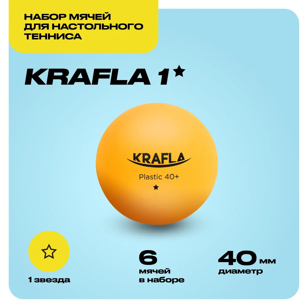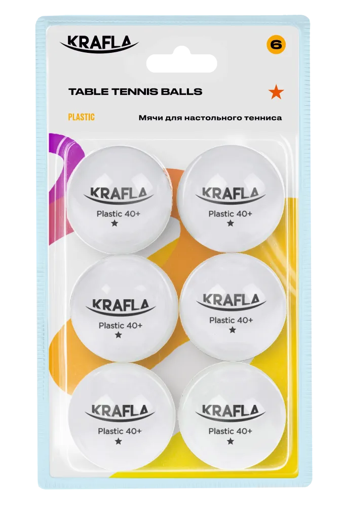 - Пластиковые мячи от KRAFLA обладают идеальной сферической формой и большей равномерностью отскока. Мячи предназначены для тренировок любителей и начинающих. Диаметр 40 мм, количество звезд - 1.