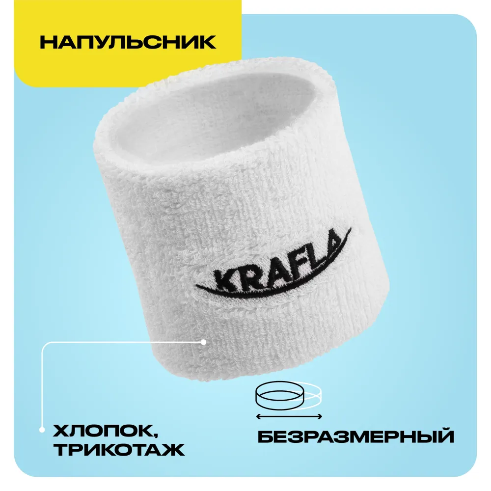 - Трикотажный напульсник от KRAFLA делает занятия спортом более комфортными. Напульсник на запястье отводит влагу и не дает ладони скользить по рукоятке во время игры. Декорирован вышивкой с логотипом бренда.