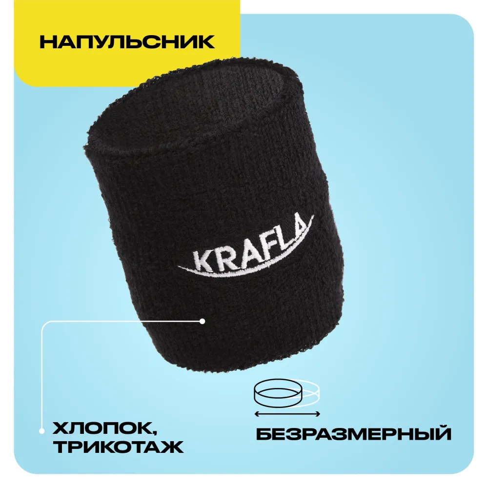 - Трикотажный напульсник от KRAFLA делает занятия спортом более комфортными. Напульсник на запястье отводит влагу и не дает ладони скользить по рукоятке во время игры. Декорирован вышивкой с логотипом бренда.