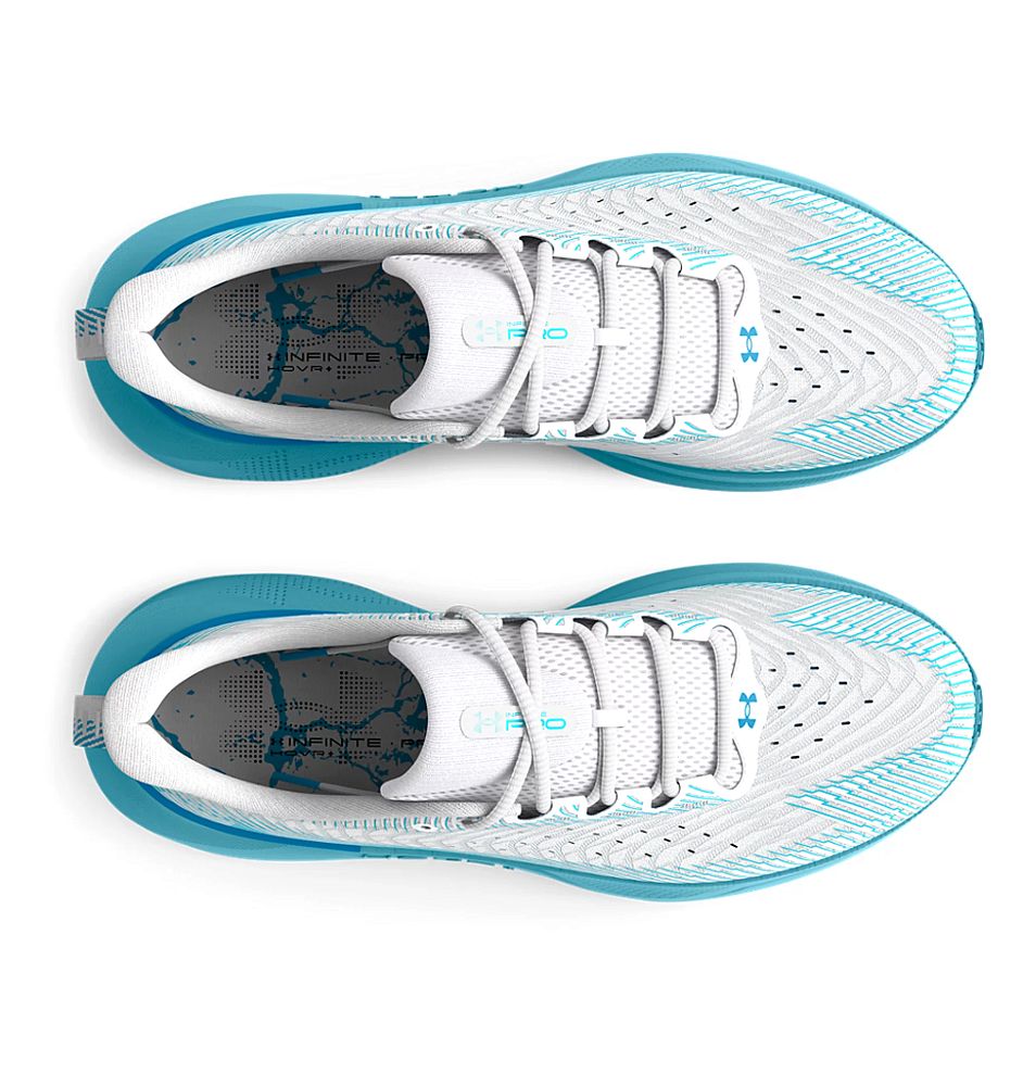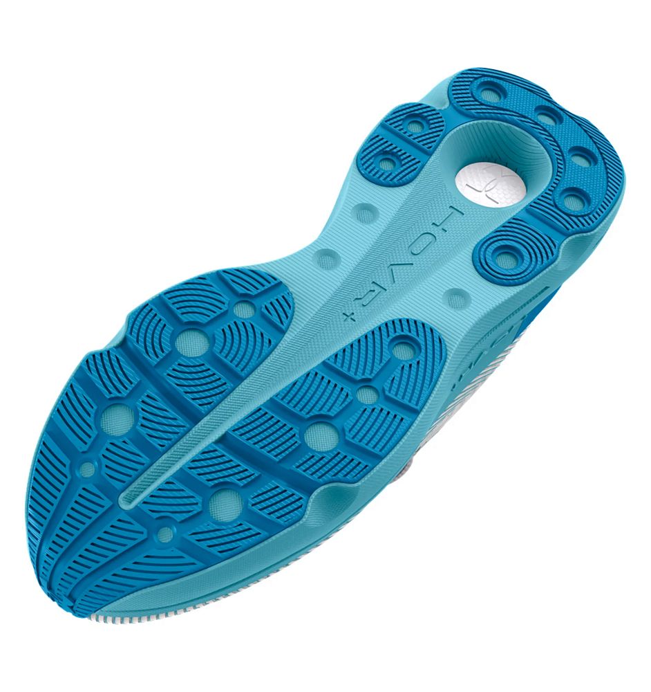 Верх в кроссовках сделан по технологии UA IntelliKnit из сетки с зонами разной плотности, которая хорошо облегает стопу и увеличивает комфорт во время длительных тренировок. Внутри кроссовка размещена специальная анатомическая стелька, сделанная при помощи 3D моделирования. Промежуточная подошва изготовлена из новой вариации фирменной пены UA HOVR+, которая отличается улучшенными характеристиками по амортизации и возврату энергии во время движения. Полиуретановая вставка в районе пятки и специальная форма каблука делают приземление стопы на поверхность более плавным и стабильным.