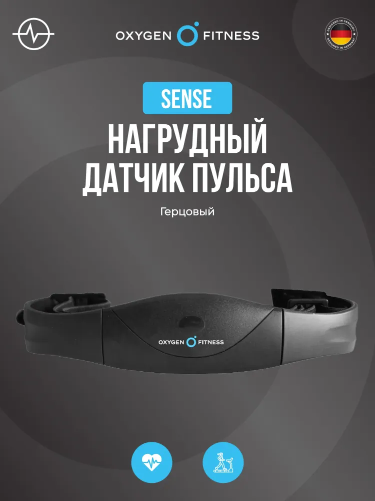 - Нагрудный датчик пульса OXYGEN FITNESS SENSE — это датчик частоты сердечных сокращений (ЧСС), который поставляется с нагрудным ремнем, распознает сигнал ЧСС и по беспроводной сети передает сигналы на принимающее устройство кардиотренажера на котором будут отображаться данные о частоте сердечных сокращений. Рекомендуется использовать со всеми кардиотренажерами, имеющими телеметрический приемник, которые поддерживают частоту 5.3 кГц (имеют встроенный приемник для подключения). Датчик имеет защиту от помех, водонепроницаемая конструкция защитит датчик от пота во время тренировки. Важно знать, что сенсорные датчики пульса не являются медицинским оборудованием и определяемые значения могут значительно отличаться от фактических. ТЕХНИЧЕСКИЕ ХАРАКТЕРИСТИКИ • Питание: 1 батарейка типа CR2032 (в комплектацию не входит) • Срок службы батарейки: 300 ч • Материал: АБС пластик, силикон, нейлон, нержавеющая сталь • Вес изделия: 0,100 кг • Частота передачи составляет 5.3 кГц • Диапазон частоты сердечных сокращений: 40-230 ударов в минуту • Дальность передачи составляет 85 см • Рабочая температура: от 0°C до +50 °C • Показатель водозащиты: IP68 (капли) • Гарантийный срок 6 месяцев