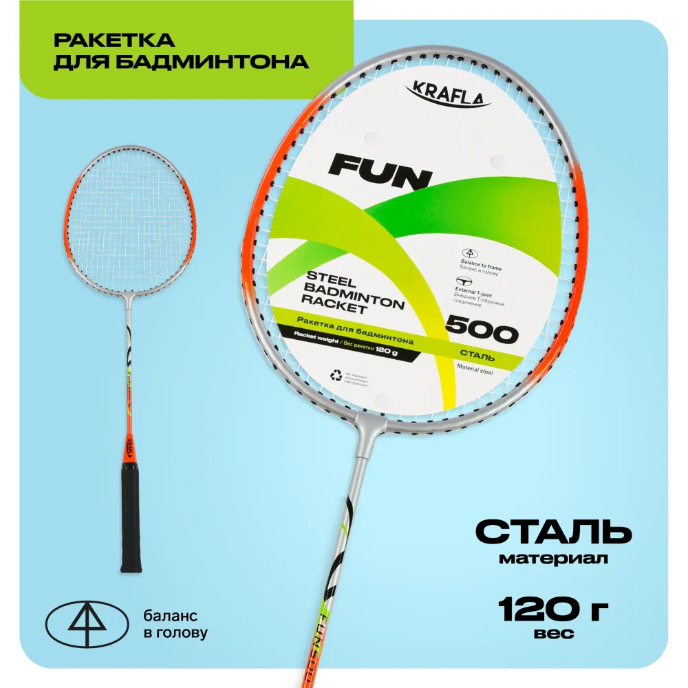 - Ракетка для бадминтона FUN 500 от бренда KRAFLA предназначена для развлечений на свежем воздухе. Стальной обод и стержень соединены с помощью тройника. Универсальный баланс ракетки обеспечивает точность, мощность ударов и наилучшую подвижность. Изометрическая форма головки выравнивает длину продольных и поперечных струн на струнной поверхности, увеличивая ударную площадь для повышения точности ударов. Вес ракетки 120 г.