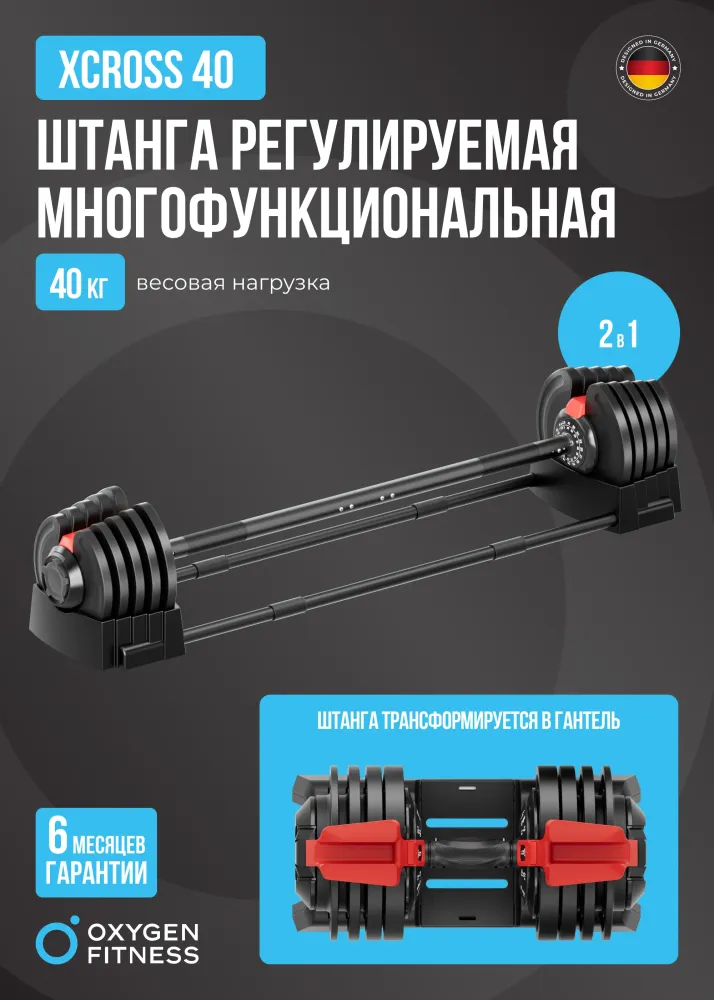 - Штанга регулируемая многофункциональная 2 в 1 OXYGEN FITNESS XCROSS 40 кг