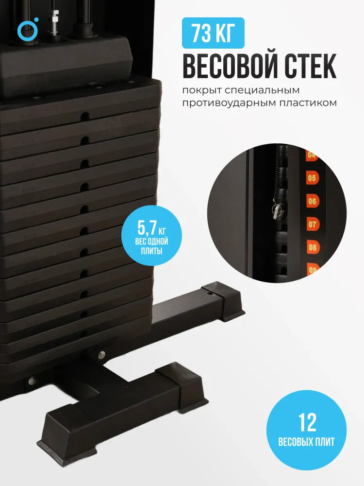 - Силовой комплекс OXYGEN FITNESS NOLAN — это многофункциональная мультистанция, предназначенная для эффективной тренировки всех групп мышц. С максимальной весовой нагрузкой до 73 кг и прочной стальной конструкцией, этот тренажер обеспечивает надежность и долговечность в эксплуатации. Его эргономичное сиденье с наполнителем из PU поролона и обивкой из искусственной кожи гарантирует комфорт даже во время длительных тренировок. Комплекс позволяет выполнять разнообразные упражнения для всех групп мышц благодаря наличию 12 плит стека весом 5.7 кг каждая, что дает возможность легко настраивать уровень нагрузки. С системой тросов диаметром 6 мм и прочной стальной конструкции, вы можете быть уверены в безопасности и эффективности тренировок. Регулируемое сиденье с 4 уровнями высоты позволяет адаптировать тренажер под рост пользователя, что делает его подходящим для людей разного телосложения. В комплекте с OXYGEN FITNESS NOLAN вы найдете множество удобных аксессуаров: канат для трицепса, рукоятку для тяги сверху, манжету для ноги и прямую рукоятку. Также в комплектацию входят неопреновые валики: 4 для ног и 2 для рук, что обеспечивает дополнительный комфорт и безопасность во время тренировок. Размеры подушек (парта бицепса, спинка и сиденье) разработаны с учетом анатомических особенностей, что способствует правильной поддержке тела. Силовой комплекс OXYGEN FITNESS NOLAN станет отличным выбором для домашних тренировок или для использования в корпоративных фитнес-клубах, обеспечивая эффективность и комфорт во время занятий. Ключевые преимущества OXYGEN FITNESS NOLAN: • многофункциональность: возможность тренировки всех групп мышц с помощью одного тренажера; • комфорт: эргономичное сиденье и продуманные размеры подушек для максимального удобства; • надежность: прочная стальная конструкция и качественные материалы обеспечивают долгий срок службы.