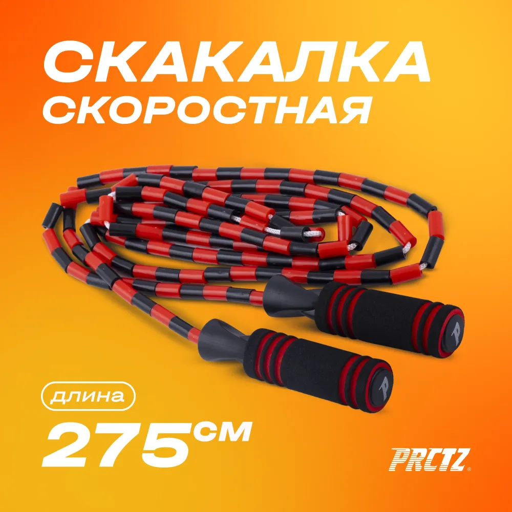 - Скоростная скакалка считается одним из лучших тренажеров для кардио нагрузки, укрепления дыхательной системы, сжигания калорий, и снятия стресса. Прыгалка скоростная для тренировок используется для разных видов спорта: для единоборств, художественной гимнастики, легкой атлетики, баскетбола или хоккея. Почему стоит выбрать скакалку PRCTZ: Скакалка скоростная PRCTZ BEADED PLASTIC JUMP ROPE - идеальный спортивный инструмент для тренировок и занятий спортом. • Ее длина составляет 275 сантиметров, что позволяет подстроить ее под любой рост пользователя. • Рукоятки имеют диаметр 3,5 сантиметров и эргономичную форму для удобного захвата. • Шнур имеет диаметр 1 сантиметр, обеспечивая быстрое и плавное вращение. • Вес скакалки всего 160 граммов, что делает ее компактной и легкой в управлении. • PRCTZ BEADED PLASTIC JUMP ROPE идеально подходит для кардиотренировок, укрепления сердечно-сосудистой системы и улучшения выносливости.