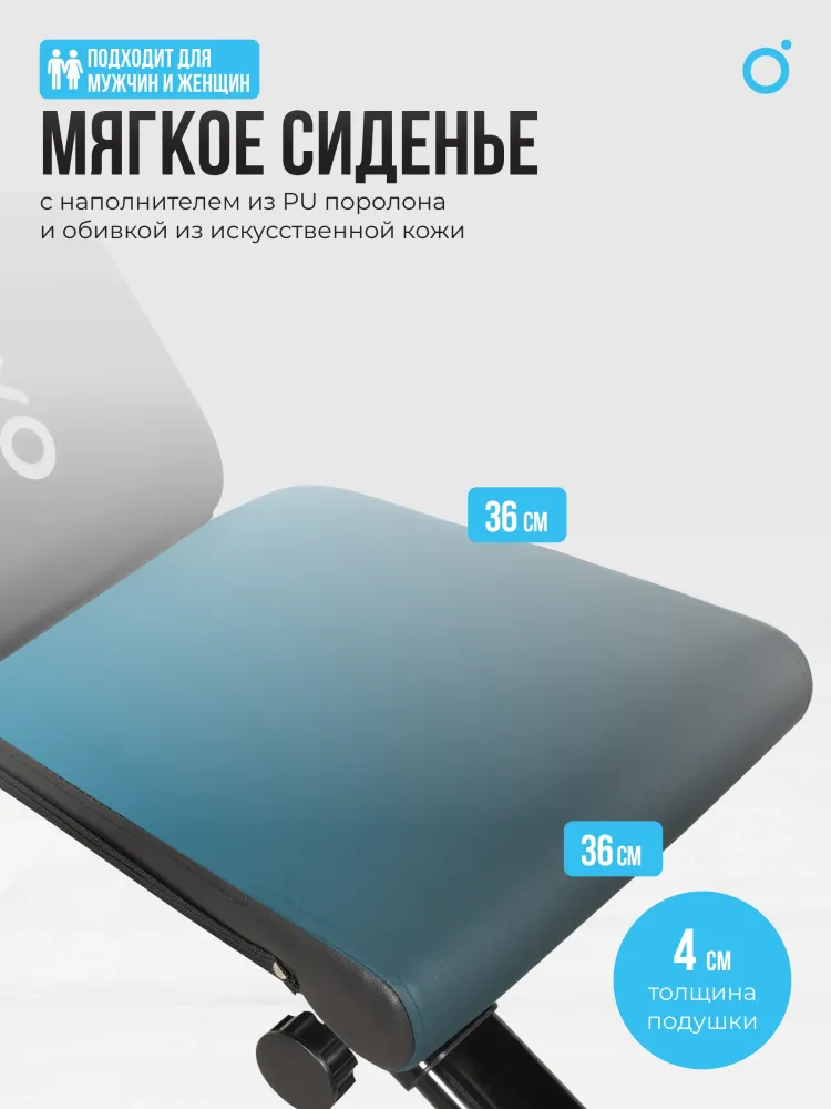- Силовая скамья OXYGEN FITNESS SEDONA — это идеальный тренажер для домашних тренировок, предназначенный для эффективной тренировки мышц рук, груди, плеч и торса. В сложенном виде скамья имеет компактные размеры (83 см в длину, 40.5 см в ширину и 29 см в высоту), что позволяет легко хранить ее даже в ограниченном пространстве. Прочная рама с толщиной профиля 1.8 мм обеспечивает надежность и стабильность во время тренировок. Скамья OXYGEN FITNESS SEDONA позволяет выполнять разнообразные упражнения, включая жим лежа и различные вариации упражнений на спину и руки. Эргономичное сиденье, наполненное PU поролоном и обитое искусственной кожей, обеспечивает комфортную поддержку во время занятий. Возможность регулировки сиденья (3 уровня) и спинки (7 уровней) позволяет адаптировать скамью под индивидуальные параметры пользователя, что делает тренировки более эффективными и персонализированными. Эта скамья дополнена 2 неопреновыми валиками для ног, которые обеспечивают дополнительный комфорт и поддержку во время выполнения упражнений. Размеры подушек составляют 36*36*4 см для сиденья и 73*28.5*4 см для спинки, что обеспечивает оптимальное распределение нагрузки и удобство. Силовая скамья OXYGEN FITNESS SEDONA — это отличный выбор для тех, кто стремится к эффективным и комфортным тренировкам в домашних условиях, сочетая функциональность и удобство в одном устройстве. Ключевые преимущества OXYGEN FITNESS SEDONA: • многофункциональность: возможность тренировки различных групп мышц, включая руки, грудь и плечи, что делает скамью универсальным инструментом для домашних тренировок; • комфорт: эргономичное сиденье и многоуровневая регулировка обеспечивают максимальный комфорт и поддержку во время тренировок; • компактность: складывающаяся конструкция позволяет легко хранить скамью в небольших помещениях.