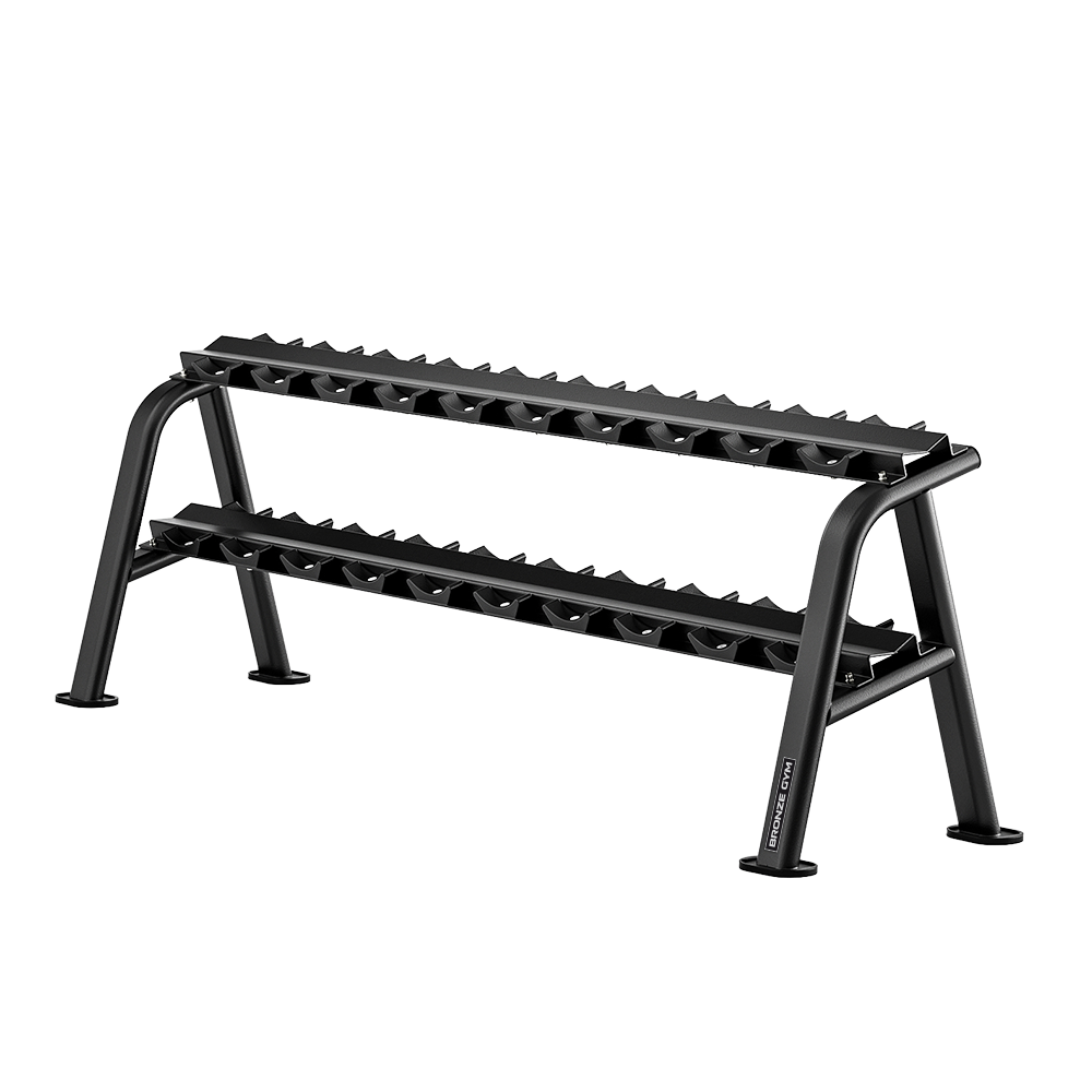 - Стойка для гантелей (10 пар) BRONZE GYM RAVE RE58 BRONZE GYM RAVE RE58 — профессиональная двухуровневая стойка, рассчитанная на хранение до 10 пар гантелей. Конструкция обеспечивает удобный и безопасный доступ к инвентарю, упрощая организацию тренировочного пространства. Углублённые держатели прочно фиксируют гантели на месте и предотвращают их скатывание. Усиленная металлическая рама с порошковым покрытием устойчива к коррозии и выдерживает значительные нагрузки. Оптимальный угол наклона полок снижает нагрузку на спину при взятии и установке гантелей. Преимущества: Вместимость — до 10 пар гантелей; Прочная и устойчивая конструкция; Надёжные держатели с защитой от скольжения; Компактный дизайн, подходящий для любого зала. BRONZE GYM RAVE RE58 — идеальное решение для аккуратного хранения гантелей и повышения эргономики в тренажёрной зоне.