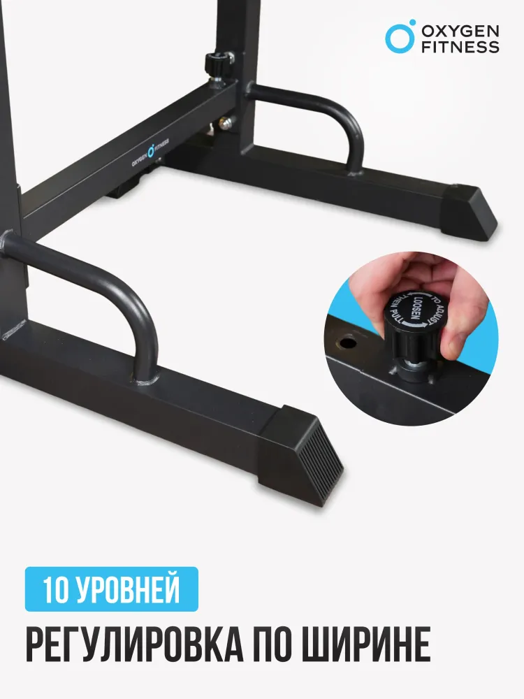 - Стойка под штангу OXYGEN FITNESS RACK — это надежный и многофункциональный тренажер, предназначенный для выполнения разнообразных силовых упражнений, которые помогут развивать различные группы мышц. С максимальной весовой нагрузкой до 100 кг, эта стойка подходит для как начинающих, так и более опытных атлетов, желающих увеличить свою силу и мышечную массу. Стойка OXYGEN FITNESS RACK предлагает 12 уровней регулировки по высоте и 10 уровней по ширине, что позволяет легко адаптировать ее под ваши индивидуальные размеры и предпочтения. Это делает тренировки более удобными и эффективными. Также стойка оснащена рукоятками для отжимания и брусьями, что расширяет возможности для выполнения различных упражнений и добавляет разнообразия в ваши тренировки. С конструкцией, выполненной из прочного квадратного профиля рамы размером 50x50 мм, стойка обеспечивает отличную стабильность и безопасность при использовании. В сложенном виде стойка имеет компактные размеры (53 см в длину, 92 см в ширину и 104 см в высоту), что позволяет легко хранить ее даже в ограниченных пространствах. В рабочем состоянии стойка занимает 53 см в длину, 137 см в ширину и 148 см в высоту, что делает ее удобной для выполнения различных упражнений. Стойка под штангу OXYGEN FITNESS RACK — это идеальный выбор для тех, кто стремится к эффективным и разнообразным тренировкам в домашних условиях, обеспечивая максимальный комфорт и безопасность! Ключевые преимущества OXYGEN FITNESS RACK: • максимальная весовая нагрузка: до 100 кг, подходит для большинства пользователей; • регулируемая высота и ширина: 12 уровней по высоте и 10 уровней по ширине для индивидуальной настройки; • многофункциональность: наличие рукояток для отжимания и брусьев для разнообразия тренировок; • прочные материалы: надежная конструкция из квадратного профиля рамы для долговечности и безопасности.