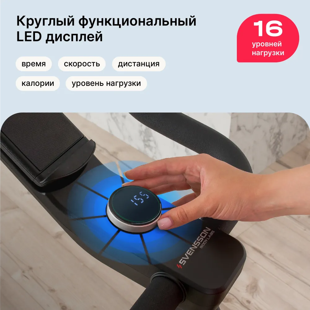 - SVENSSON BODY LABS FURY SPIN – идеальный выбор для групповых тренировок в домашних условиях. Электромагнитная система нагружения с 16 уровнями нагрузки и инерционный маховик весом 15 кг создадут максимально комфортные условия для достижения желаемых результатов. Посадка вертикальная, а эргономичное велосипедное сиденье регулируется по горизонтали и вертикали. Мультипозиционный руль тоже имеет возможность регулировки по высоте, обеспечивая идеальное положение для каждого участника тренировки. Специальный инверсионный ход позволяет тренироваться, вращая педали как вперед, так и назад. Прорезиненные педали с регулируемыми ремешками и трехкомпонентный шатун обеспечивают надежное крепление ног и эффективную работу мышц. Консоль с LED дисплеем отображает такие важные параметры, как скорость, время, дистанция, расход калорий и уровень нагрузки. Благодаря возможности подключения к популярным коучинговым мобильным приложениям для смартфонов с поддержкой Bluetooth, таких как Fitshow™, Kinomap™, Zwift™ и др., пользователи могут улучшать свои тренировки и просматривать подробную статистическую информацию о своих достижениях. Максимальный вес пользователя – 130 кг, а размер в рабочем состоянии составляет – 121*52*102 см. SVENSSON BODY LABS FURY SPIN оснащен компенсаторами неровностей пола и транспортировочными роликами для удобства перемещения спин-байка.