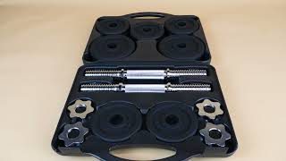 - Наборные гантели OXYGEN FITNESS DB-SET20 для фитнес-тренировок идеально подходят как для новичков, так и для опытных атлетов. Чугунные блины с антикоррозионным покрытием имеют шероховатую поверхность для защиты от скольжения. Хромированные грифы с рельефной рукояткой обеспечивают надежность хвата и предназначены для блинов с посадочным отверстием 30 мм. Резьбовые замки с хромированным покрытием обеспечивают быстрое и надежное крепление блинов на грифе. На замке установлено кольцо протектора из высокопрочной резины, которое предотвращает произвольное раскручивание замков и сход весов. Комплект позволяет собрать две гантели с различными весами от 5 до 10 кг. Максимальный наборный вес одной гантели при использовании блинов из комплекта – 14 кг. Пластиковый кейс для хранения идет в комплекте.