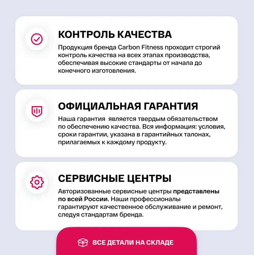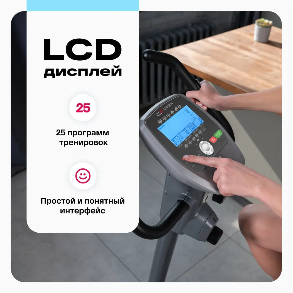 МаркаCarbon Fitness АртикулU550M Назначение (Fitathlon)домашнее Тип тренажера (Fitathlon)велотренажер вертикальный Посадка (Fitathlon)вертикальная Система нагружения (Fitathlon)электромагнитная Количество уровней нагрузки16 Регулировка нагрузкиэлектронная Инерционный вес маховика, кг12 Тип педального узлатрехкомпонентный Сиденьекомфортабельная подушка анатомической формы Регулировка положения сиденьяпо горизонтали и вертикали Рукояткистандартные с оплеткой из пенорезины Регулировка положения руляпо горизонтали КонсольLCD Показания консоливремя, скорость, дистанция, калории, килоджоули, пульс, темп (обороты в мин.), фитнес тест Общее количество программ25 Спецификация программбыстрый старт, тренировки по целевому параметру — времени, дистанции, расходу калорий, 12 предустановленных программ, 4 пульсозависимые программы, 4 пользовательских программы, фитнес тест Язык интерфейсаанглийский Транспортировочные роликиДа Компенсаторы неровностей полаДа Дополнительные особенности тренажерарегулировка сиденья по вертикали и горизонтали; регулируемый наклон поручней; регулируемые ремешки педалей; самобалансирующиеся педали позволяют легко попасть стопами в ремешки; компенсаторы неровности пола сбоку опор; эргономичная форма корпуса обеспечивает комфортную посадку на тренажер, не перекидывая ногу Размер в упаковке (ДхШхВ), см108х28x65 Размер в рабочем состоянии (ДхШхВ), см97х54x143 Вес нетто, кг37.2 Вес брутто, кг39.2 Максимальный вес пользователя (Fitathlon)150 Подключение к сети220 В ПроизводительFitathlon Group (подразделение в Германии) Страна изготовленияКНР Гарантийный срок12 мес. Показать больше -
