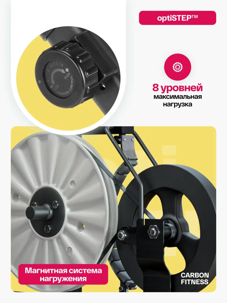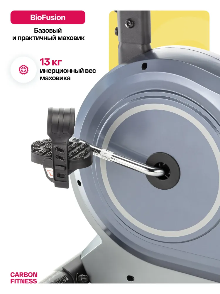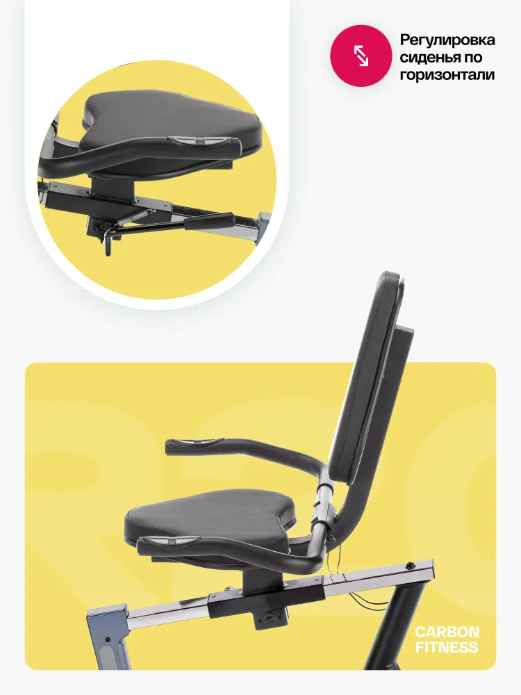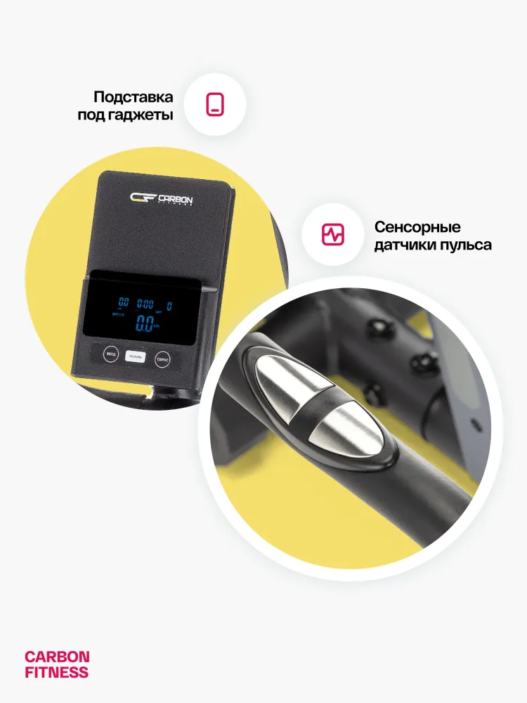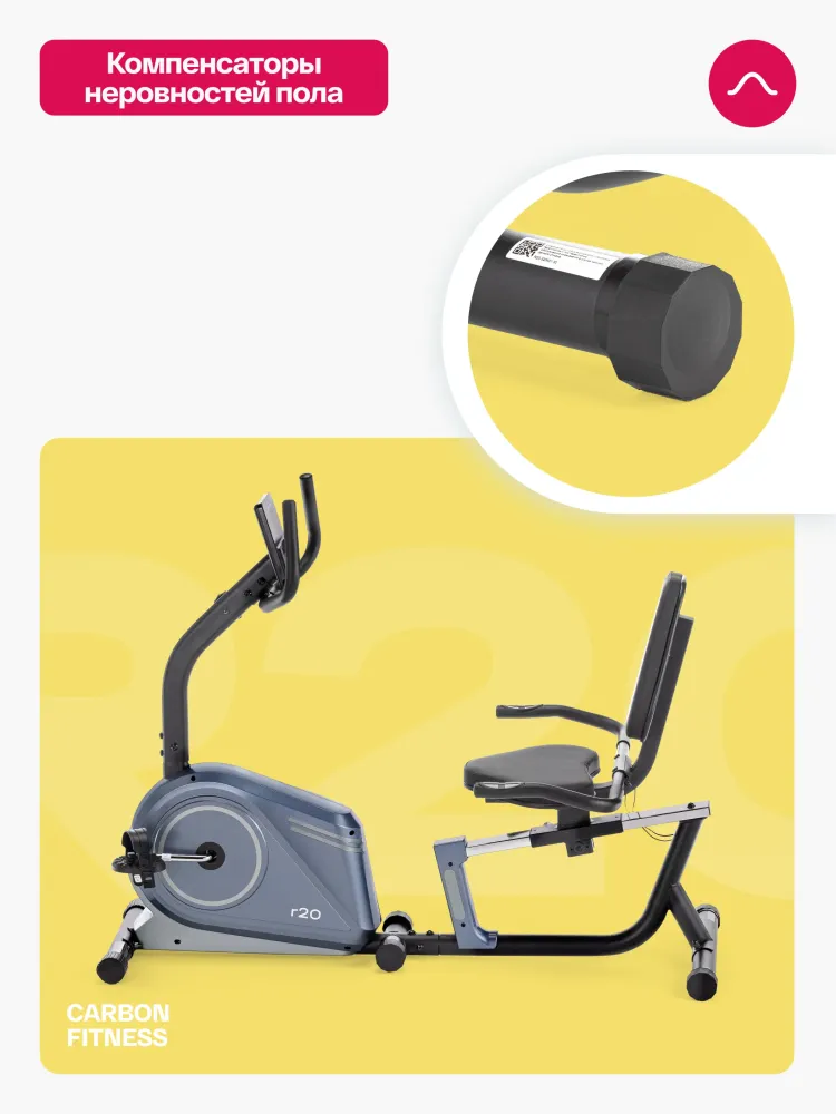 - Домашний велотренажер CARBON FITNESS R20 представляет собой идеальное решение для эффективных тренировок. Горизонтальная посадка велотренажера, обеспечивает комфорт и эргономичность во время занятий. Высокопрочная рама с антикоррозийной обработкой и покраской в один слой гарантирует долговечность и надежность тренажера. Магнитная система нагружения optiSTEP™ с восемью уровнями нагрузки позволяет настроить интенсивность тренировки под свои потребности. Однокомпонентный литой шатун педального узла и прорезиненные педали с регулируемыми ремешками обеспечивают комфорт и безопасность во время занятий. Эргономичное сиденье с спинкой и поручнями и регулировкой по горизонтали позволяет настроить его под ваше удобство. Стандартный руль с оплеткой из пенорезины обеспечивает удобство и комфорт во время тренировки. Измерение пульса осуществляется сенсорными датчиками на поручнях. Консоль с LCD дисплеем и яркой индикацией отображает информацию о времени, скорости, дистанции, калориях, пульсе, ВАТТ-ах и количестве оборотов в минуту, обеспечивая вам контроль над вашими тренировками. Велотренажер CARBON FITNESS R20 предусматривает ручной режим и быстрый старт для удобства использования. Языки интерфейса - русский и английский. Дополнительные удобства включают подставку под планшет, транспортировочные ролики и компенсаторы неровностей пола. Тип пластика - ABS пластик из исходного сырья, обеспечивающий прочность и долговечность конструкции. Размер в рабочем состоянии составляет 137x67x107 см, а вес нетто - 24 кг, обеспечивая устойчивость и надежность во время тренировок. Погрузитесь в мир активного образа жизни с велотренажером CARBON FITNESS R20 и достигните своих фитнес-целей с комфортом и удовольствием. Ключевые преимущества CARBON FITNESS R20: • магнитная система нагружения optiSTEP™ с 8 уровнями нагрузки; • максимальный вес пользователя до 120 кг; • вес тренажера составляет 24 кг; • размер в рабочем состоянии составляет 137x67x107 см.
