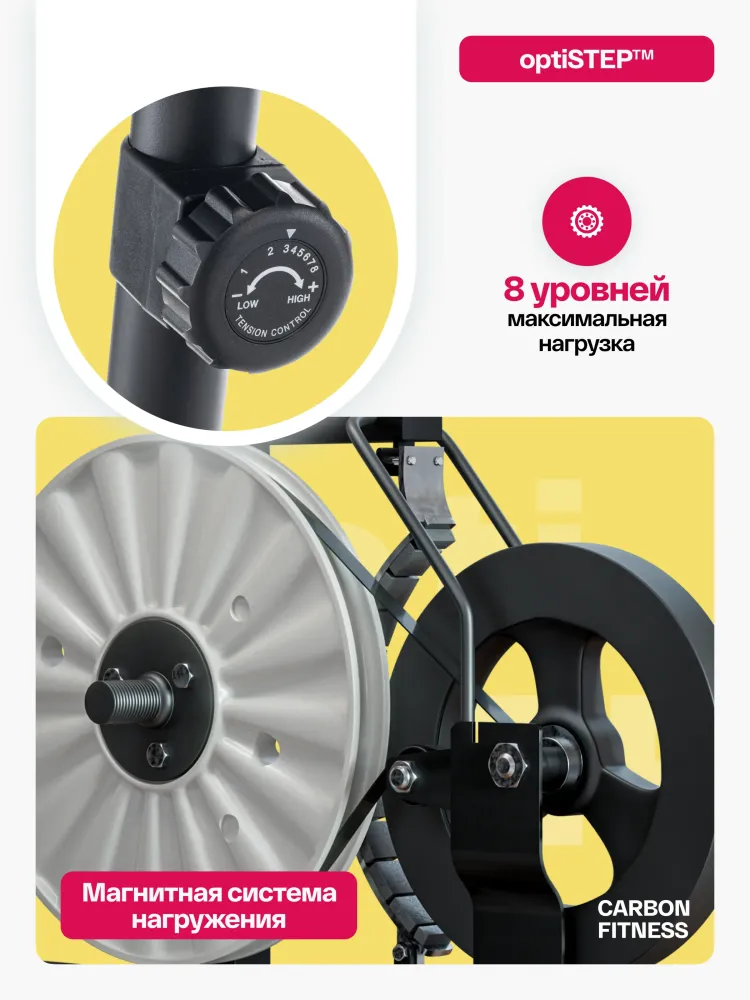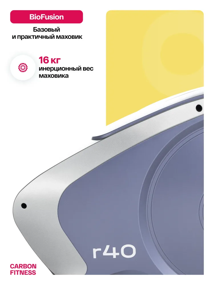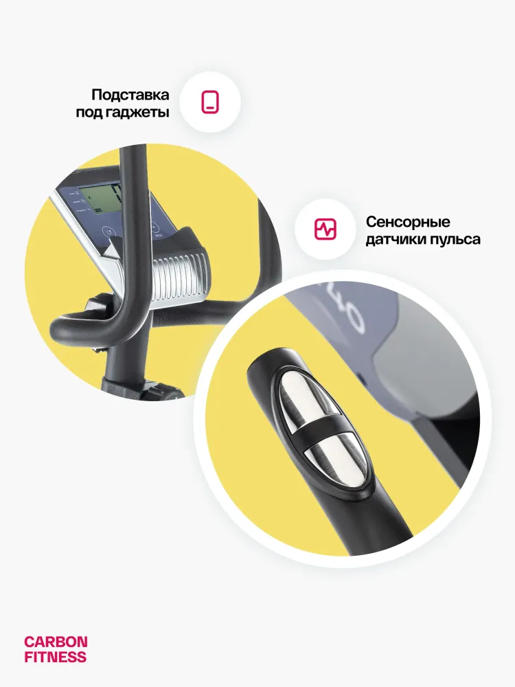 - Велотренажер CARBON FITNESS R40 с горизонтальной посадкой и базовыми характеристиками - идеальный выбор для новичков в фитнесе и тех, кто столкнулся с проблемами в области спины. Его горизонтальная посадка и анатомическая форма сиденья создают оптимальные условия для комфортного и устойчивого положения тела во время тренировки. Такая конструкция снижает нагрузку на поясницу и обеспечивает поддержку для спины, позволяя тренироваться без излишнего дискомфорта и риска повреждений. Велотренажер CARBON FITNESS R40 оснащен магнитной системой нагружения optiSTEP™ с 8 уровнями нагрузки и маховик BioFusion с инерционным весом 16 кг которые позволяют легко регулировать интенсивность тренировки под свои потребности, а также обеспечивают плавность и стабильность движений. Вес тренажера составляет 35,2 кг, а сам тренажер выдерживает пользователя весом до 130 кг. Антискользящие педали с регулируемыми ремешками обеспечивают надёжное сцепление и безопасность во время тренировок. R40 оснащен транспортировочными роликами и компенсаторами неровностей пола, что делает процесс перемещения тренажера простым и удобным. Габариты тренажера составляют: 130*64*119см, делая его компактным и подходящим для установки даже в небольших помещениях. LCD-консоль велотренажера обеспечивает базовый набор показателей, включая время, скорость, дистанцию, калории, пульс и одометр, что помогает отслеживать прогресс тренировок и достигать поставленных целей с легкостью. Интерфейс консоли прост и интуитивно понятен для комфортного использования. Горизонтальный тренажер Carbon Fitness R40 это не просто инструмент для тренировок, а источник мотивации и заботы о вашем здоровье. С нашей 12-месячной гарантией вы получаете уверенность в надежности и высоком качестве этого тренажера. Не откладывайте заботу о себе на потом - начните прямо сейчас и достигните новых высот в своих тренировках! Ключевые преимущества CARBON FITNESS R40: • магнитная система нагружения optiSTEP™ с 8 уровнями нагрузки; • маховик BioFusion с инерционным весом 16 кг; • конструкция с анатомическим сиденьем для стабилизации спины; • габариты тренажера: 130*64*119 см.