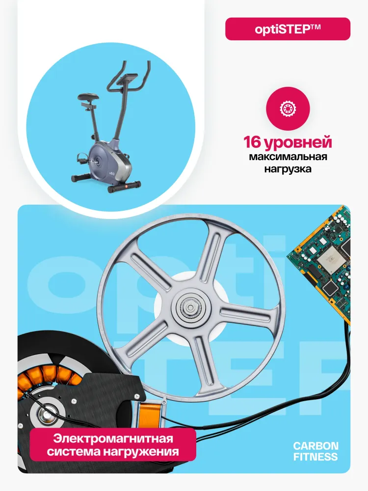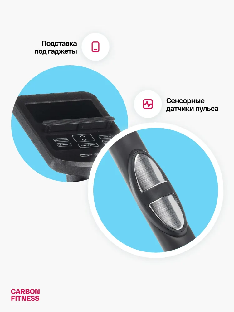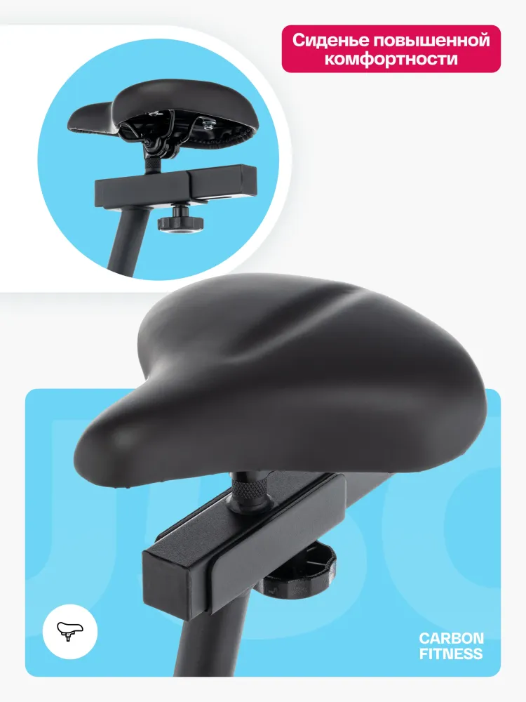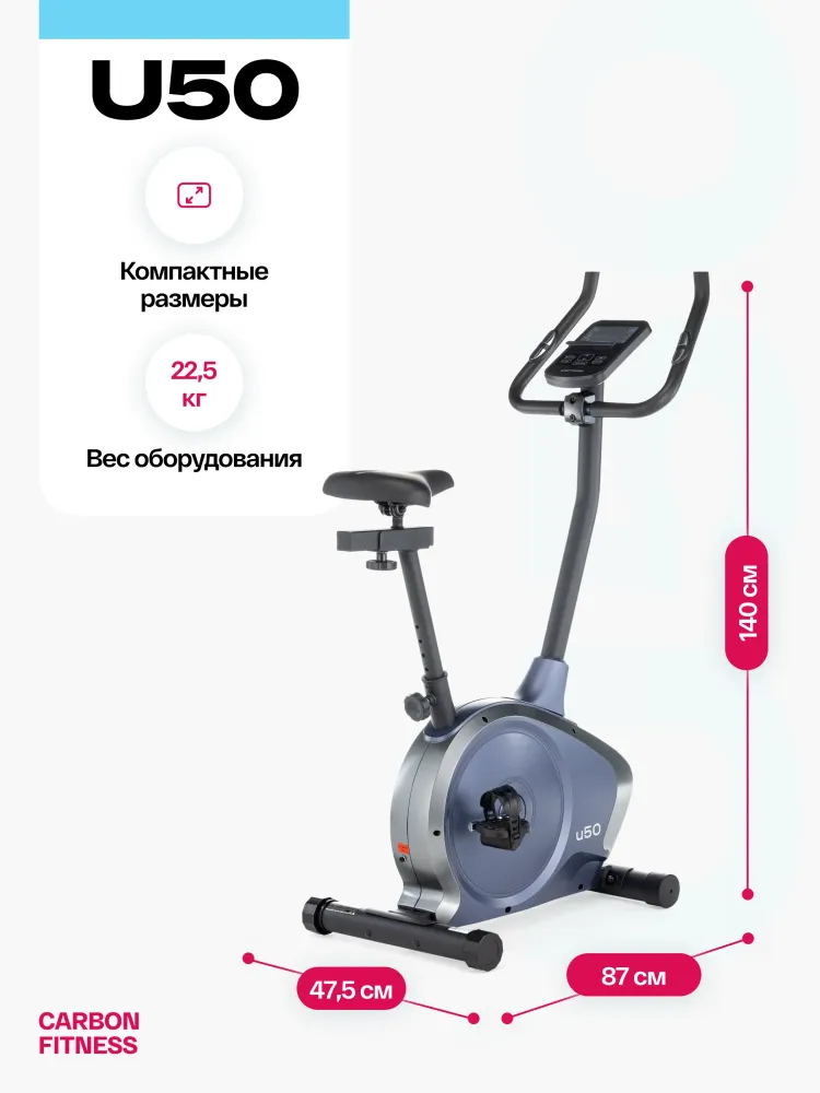 - Велотренажер домашний CARBON FITNESS U50 с вертикальной посадкой – это идеальный выбор для домашних тренировок. Он подходит как для начинающих, так и для любителей фитнеса, предлагая базовые, но функциональные характеристики, обеспечивающие высокую эффективность занятий. Сиденье анатомической формы с возможностью регулировки в двух плоскостях - по вертикали и горизонтали, а также педали с антискользящим покрытием и регулируемыми ремешками обеспечивают максимальный комфорт и безопасность во время тренировок на велотренажере U50. CARBON FITNESS U50 оснащен электромагнитной системой нагружения optiSTEP™ с 16 уровнями нагрузки, которая позволяет настроить тренировку под индивидуальные потребности и уровень подготовки. Маховик BioFusion с инерционным весом 16 кг гарантирует плавные и устойчивые движения во время тренировок. Этот маховик обеспечивает оптимальную инерцию, что создает естественное и комфортное ощущение езды на велотренажере. Габариты тренажера U50 составляют всего 87*47,5*140 см, что делает его подходящим даже для небольших комнат. Благодаря транспортировочным роликам и компенсаторам неровностей пола, установка и перемещение оборудования становятся простым и удобным процессом. Черный LCD дисплей с яркой белой индикацией и понятным интерфейсом отображает разнообразные показатели тренировки, включая время, скорость, дистанцию, калории, пульс, нагрузку, профиль программы, обороты в минуту и ВАТТы. С 22 программами, включая ручной режим, предустановленные программы, жироанализатор, программы по пульсу и пользовательские программы, вы сможете регулировать свои тренировки и достигать новых целей. Дополнительно, мягкая оплетка у руля и сенсорные датчики пульса обеспечивают комфорт и удобство во время занятий. CARBON FITNESS U50 это не просто велотренажер, а источник мотивации и заботы о вашем здоровье. С нашей 12-месячной гарантией вы получаете уверенность в надежности и высоком качестве этого тренажера. Не откладывайте заботу о себе на потом - начните прямо сейчас и достигните новых высот в своих тренировках. Ключевые преимущества CARBON FITNESS U50: • электромагнитная система нагружения optiSTEP™ с 16 уровнями нагрузки; • маховик BioFusion с инерционным весом 16 кг; • регулируемое анатомическое сиденье; • компактные габариты тренажера: 87*47,5*140 см.