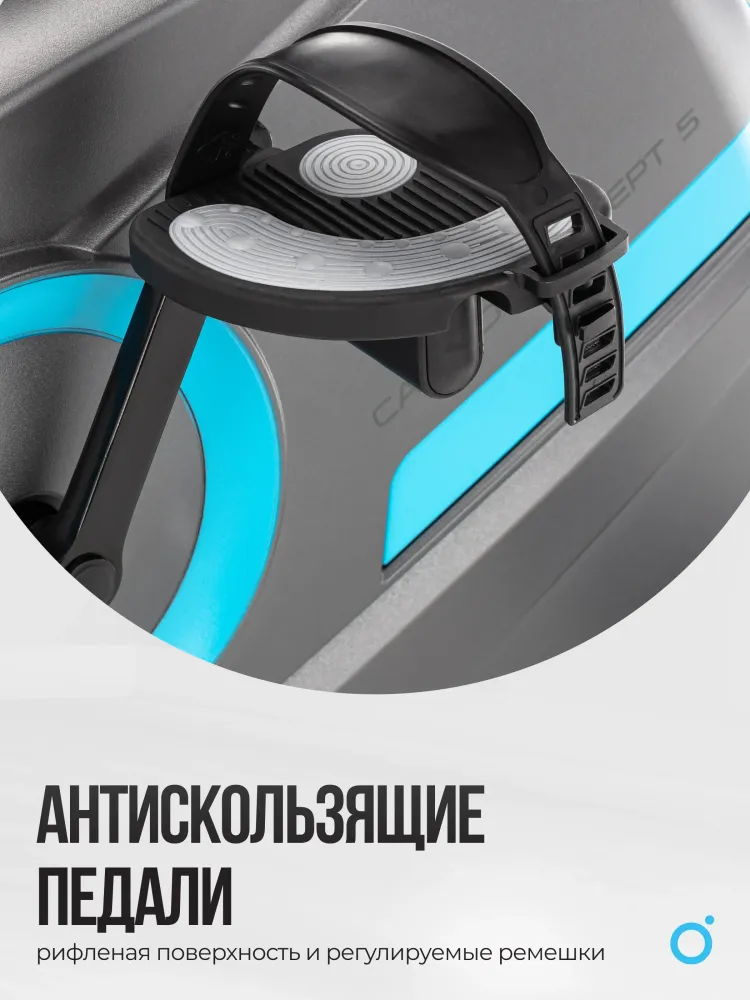 - Велотренажер CARDIO CONCEPT 5 от OXYGEN FITNESS представляет собой надежное и эффективное оборудование для занятий фитнесом в уютной обстановке вашего дома. Электромагнитная система нагружения magicFLOW™ PLUS с 16 уровнями нагрузки позволяет вам настраивать интенсивность тренировок в соответствии с вашими потребностями. Высокопрочная рама с антикоррозийной обработкой обеспечивает долговечность и надежность тренажера. Удобное сиденье анатомической формы и регулировкой положения как по вертикали, так и по горизонтали, обеспечивает комфорт и поддержку во время тренировок. Сенсорные датчики на поручнях и встроенный телеметрический приемник для нагрудного кардиодатчика (приобретается отдельно) позволяют вам контролировать свой пульс и следить за сердечным ритмом. Синий LCD дисплей с яркой белой индикацией отображает разнообразные показания, включая время, скорость, дистанцию, калории, пульс, нагрузку, профиль программы, обороты в минуту и ВАТТы. Среди 14 программ тренировок вы найдете быстрый старт, ручной режим, пользовательские программы, предустановленные программы, пульсозависимые программы, жироанализатор и программу восстановления. Интеграционные технологии Bluetooth позволяют работать с мобильными фитнес приложениями, такими как Kinomap™ и Zwift™, обогащая тренировку виртуальными возможностями. Подставка под планшет, транспортировочные ролики, компенсаторы неровностей пола и энергосбережение делают использование велотренажера максимально удобным и эффективным. С велотренажером CARDIO CONCEPT 5 вы получаете надежный тренажер для занятий фитнесом в домашних условиях, который поможет достичь спортивных целей. Ключевые преимущества OXYGEN FITNESS CARDIO CONCEPT 5: • электромагнитная система нагружения magicFLOW™ PLUS с 16 уровнями нагрузки; • 14 встроенных программ тренировок; • возможность работы с тренировочными фитнес приложениями Fitshow™, Kinomap™; • телеметрический приемник для нагрудного кардиодатчика (приобретается отдельно).